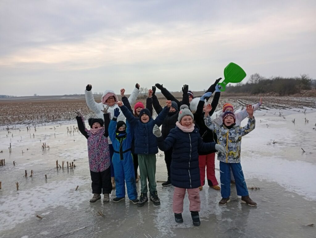 Hopo hopo! Tu Klub w Wąwelnicy i kolejna relacja z naszych ferii. Dziś wybraliśmy się na spacer, podczas którego trafiliśmy na ogromną kałużę – oczywiście