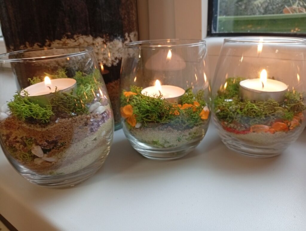 Kolejne styczniowe zajęcia plastyczne w dalszym ciągu związane były z zimą i z mrozami. Stworzyliśmy lodowe kręgi, z zamkniętymi w środku zielonymi roślinkami, które pozbieraliśmy