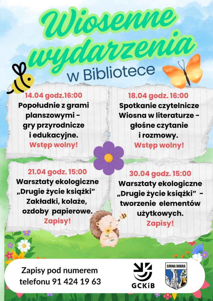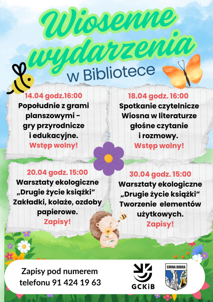 Zapraszamy wszystkich miłośników książek, kreatywnych działań i dobrej zabawy na cykl wiosennych wydarzeń w naszej bibliotece! Przygotowaliśmy różnorodny program, który łączy literaturę, ekologię oraz integrację