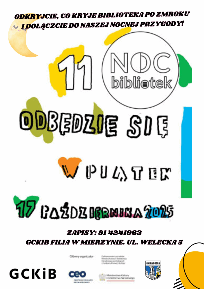 Tegoroczna NOC BIBLIOTEK pod hasłem „Do dzieła” zawita także do filii bibliotecznej w Mierzynie.