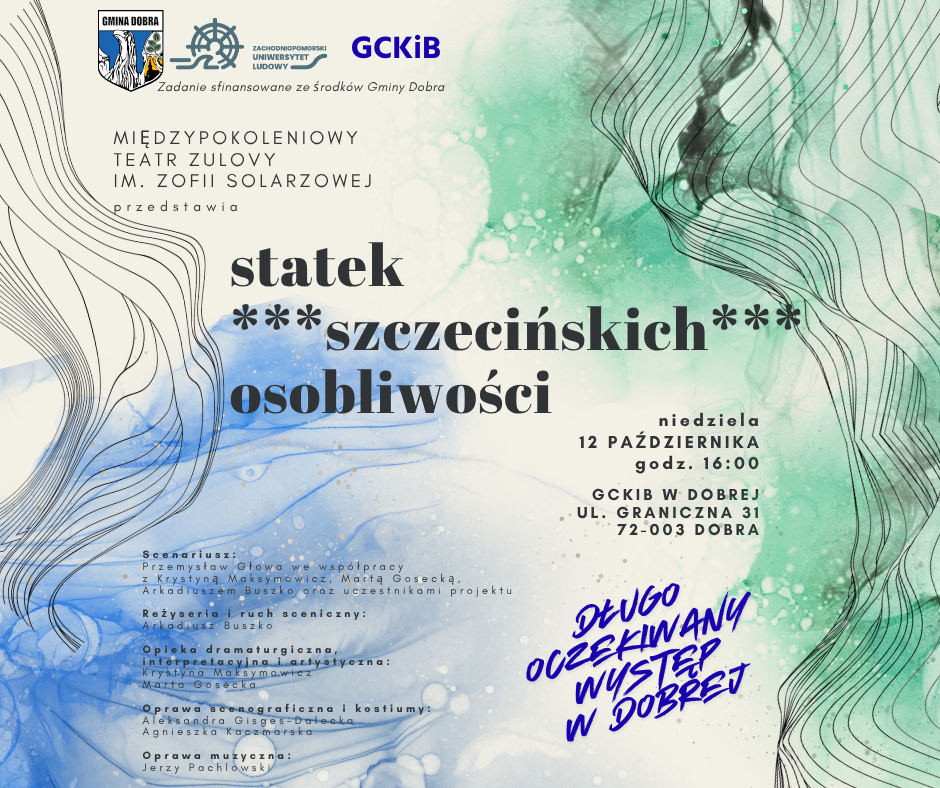 Międzypokoleniowy Teatr Zulovy im. Zofii Solarzowej zaprasza na spektakl „Statek szczecińskich osobliwości” w GCKiB w Klubie w Dobrej.