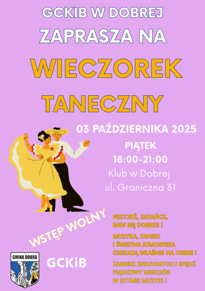 Muzyka, taniec i dobra zabawa – zapraszamy na Wieczorek Taneczny w Klubie GCKiB w Dobrej już 03 października!