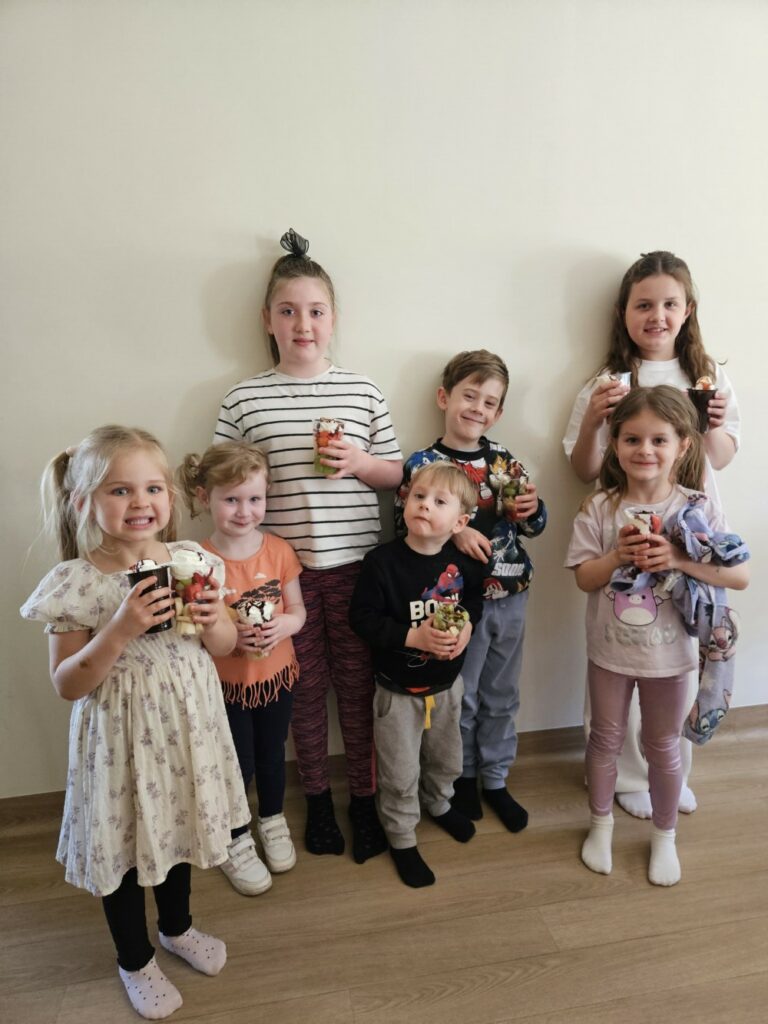 Twórcze Piątki w Klubie w Dołujach – tym razem kulinarnie! 🧁 Podczas ostatnich zajęć dzieci zamieniły się w małych cukierników i wspólnie przygotowały pyszne, pachnące