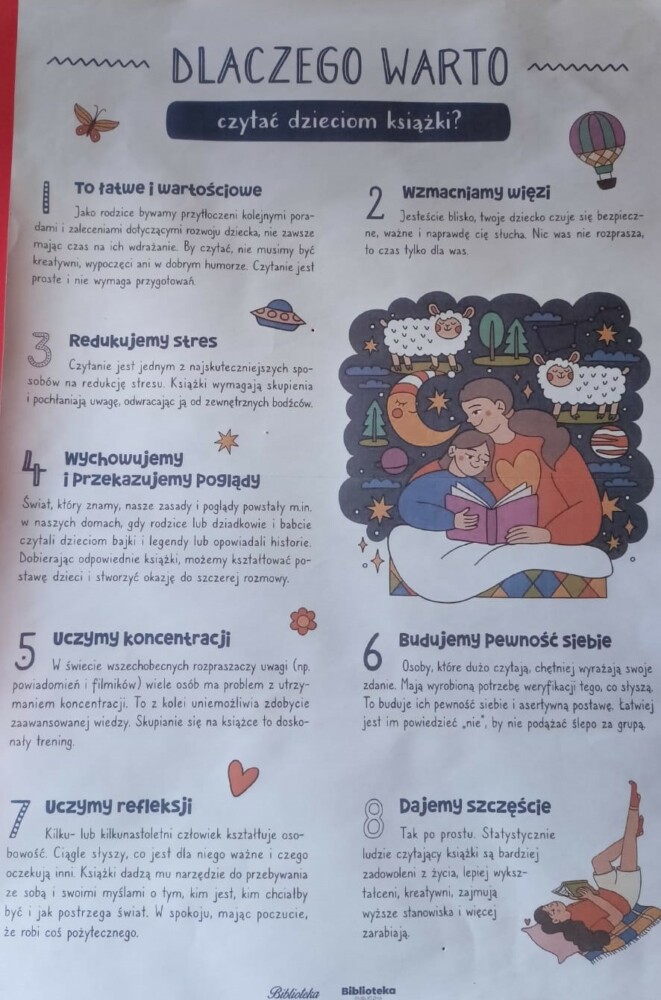 Poza fascynującymi historiami ukrytymi na regałach czeka na Was mnóstwo kreatywnych i rozwojowych zajęć.
