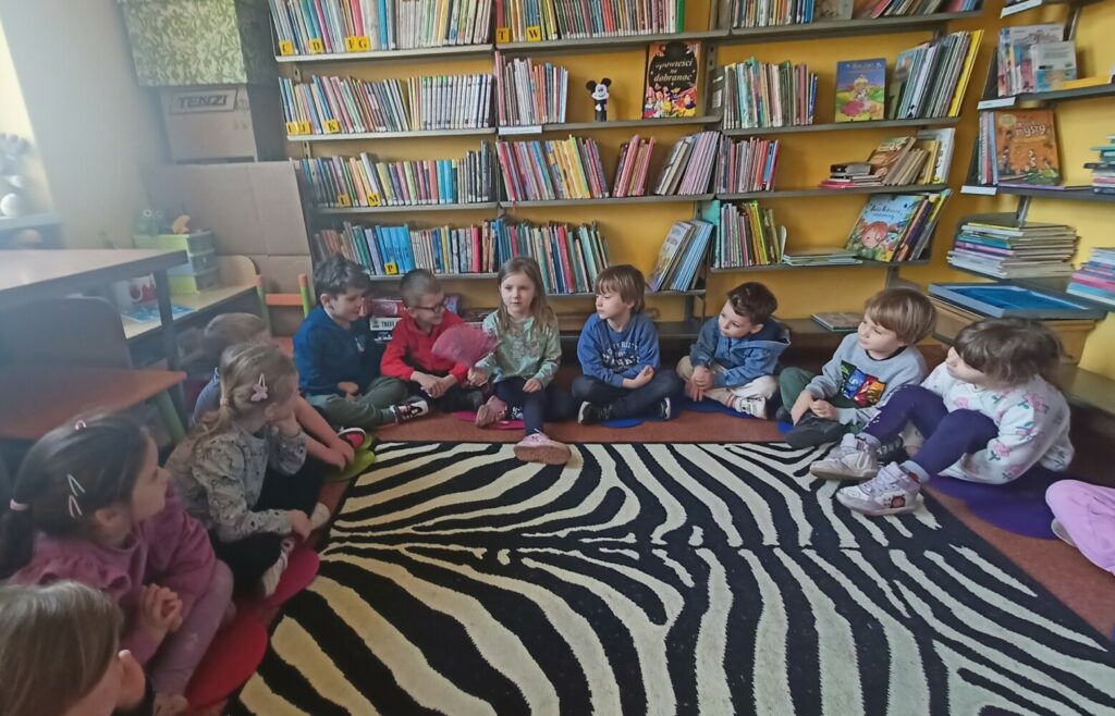 Podczas spotkania nie mogło zabraknąć wspólnego czytania oraz rozmowy o wartościach płynących z obcowania z książką. Dzieci dowiedziały się, jak należy dbać o wypożyczone książki oraz jaką drogę pokonują, zanim trafią na biblioteczne półki.