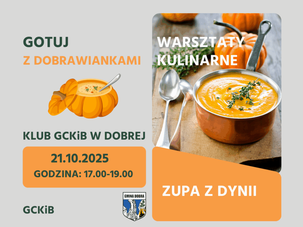 Zapraszamy na wyjątkowe warsztaty kulinarne z Dobrawiankami, podczas których przygotujemy pyszną zupę z dyni. Będzie aromatycznie, smacznie i bardzo jesiennie!