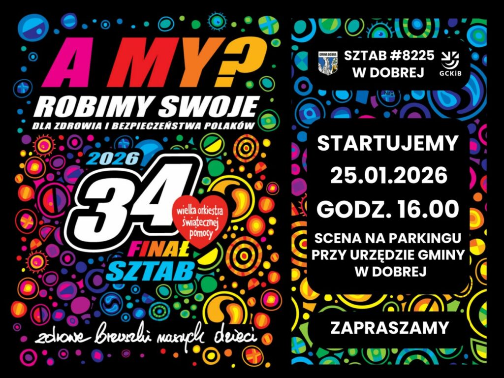 Z ogromną radością informujemy, że włączamy się do ogólnopolskiej akcji Wielkiej Orkiestry Świątecznej Pomocy! 📍 Sztab #8225 w Dobrej już szykuje się do grania –