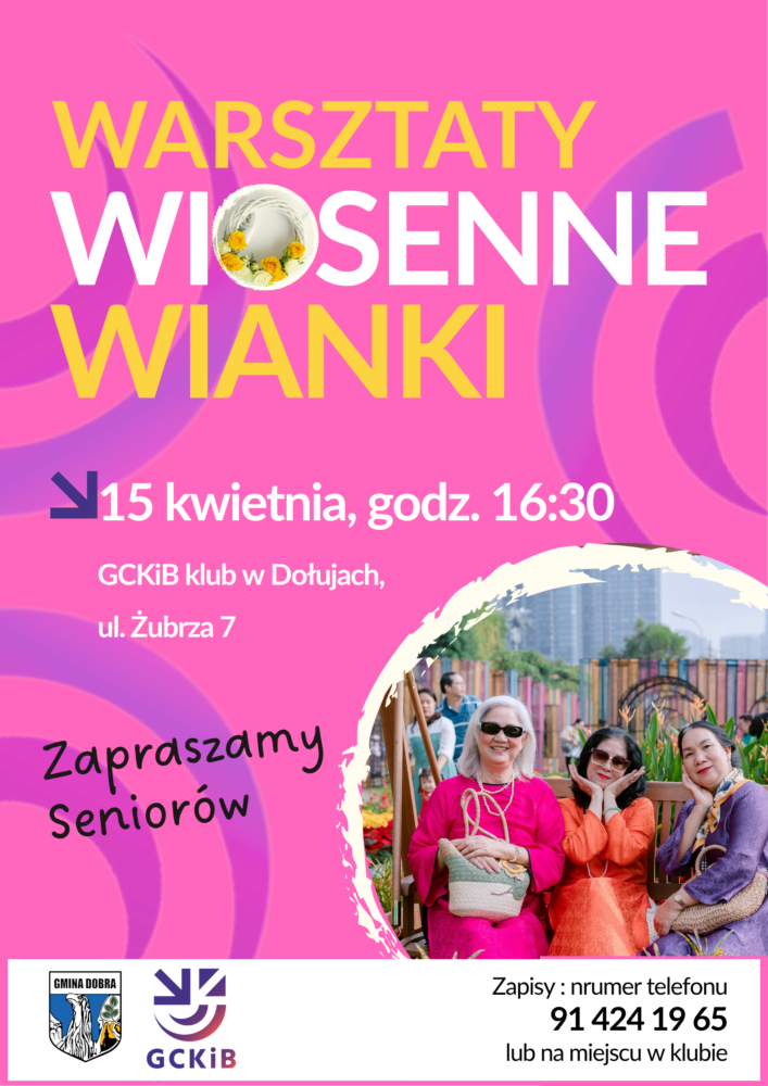 Gminne Centrum Kultury i Bibliotek w Dobrej zaprasza wszystkich seniorów z gminy Dobra na kreatywne warsztaty „Wiosenne wianki”.