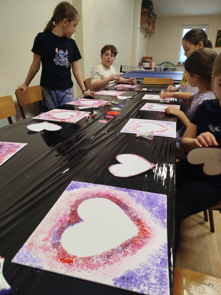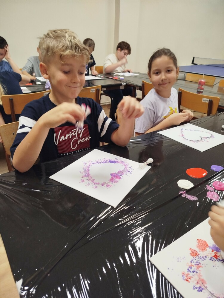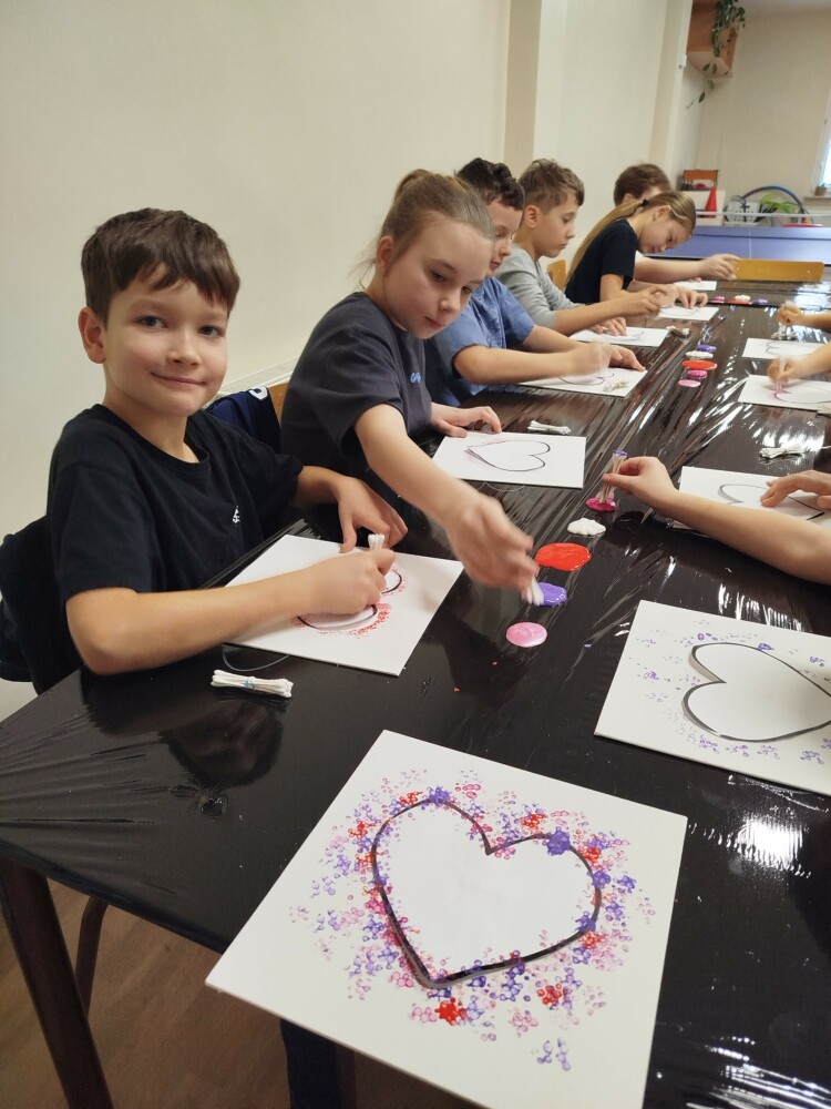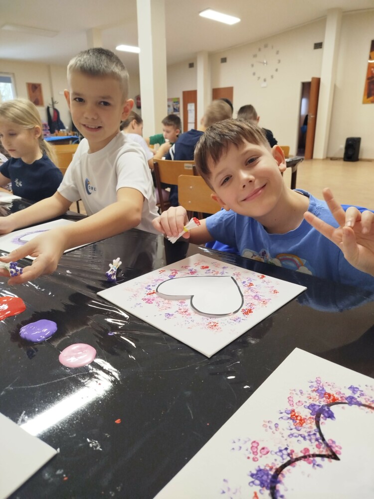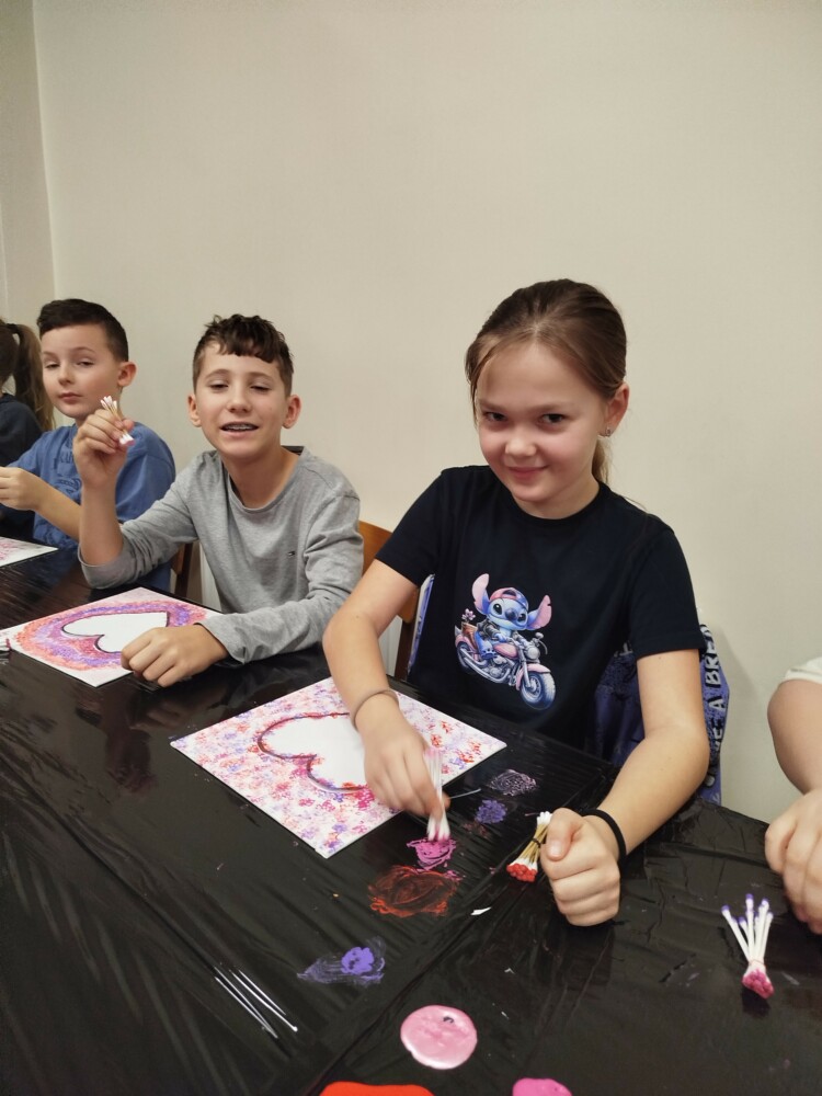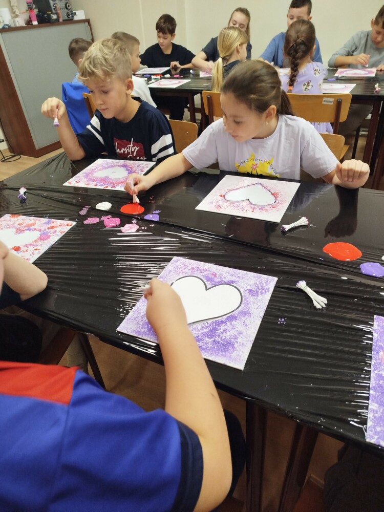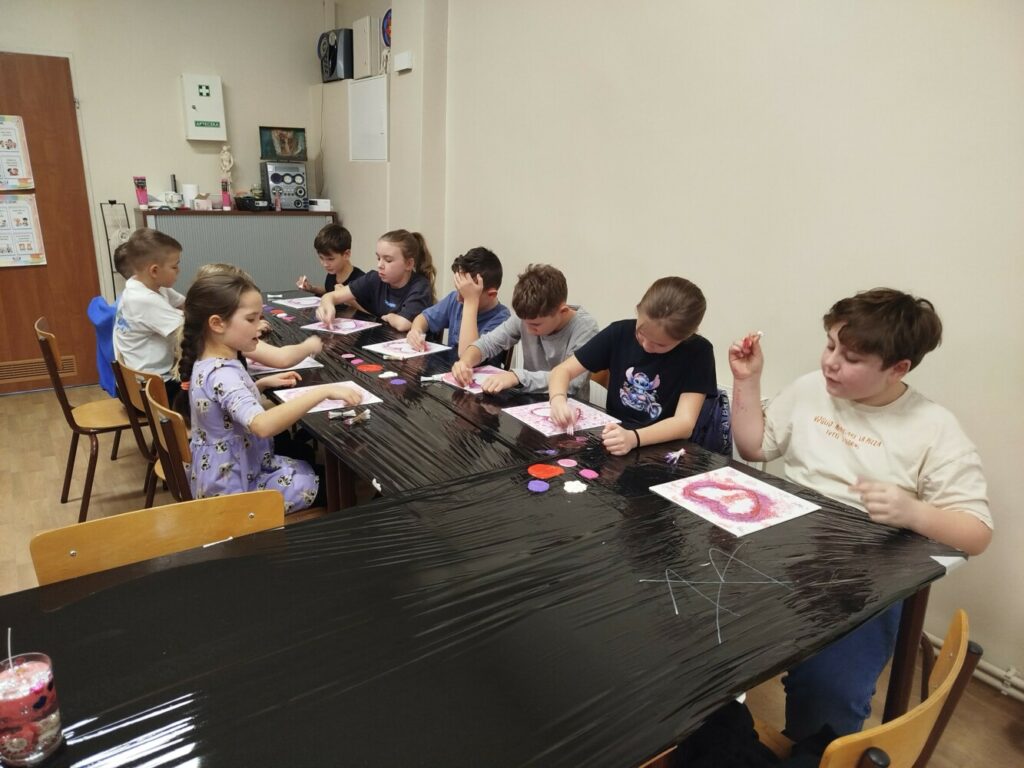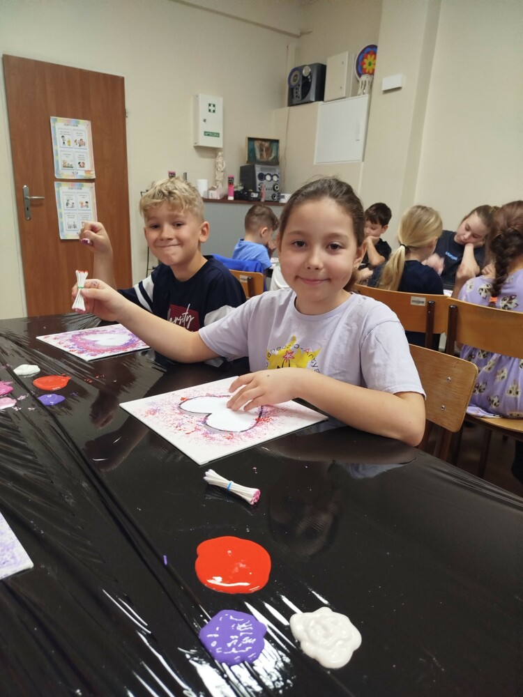 Podczas warsztatów rękodzielniczych w Klubie GCKiB w Dołujach powstawały wyjątkowe świece sojowe w szkle. Najpierw dzieci malowały naczynia farbami witrażowymi – pojawiały się serca, walentynkowe wzory i kolorowe kontury.