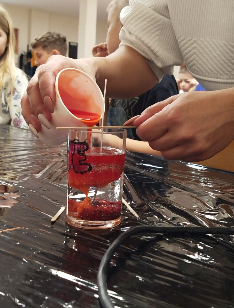 W środku tworzone były warstwowe kompozycje w odcieniach czerwieni i różu, a w niektórych świeczkach znalazły się dekoracyjne elementy – muszelki, kamyczki i brokat. Efekt? Małe, błyszczące dzieła sztuki oraz ogromna duma z własnoręcznie wykonanej pracy.