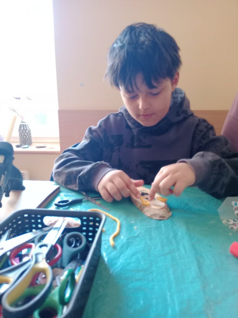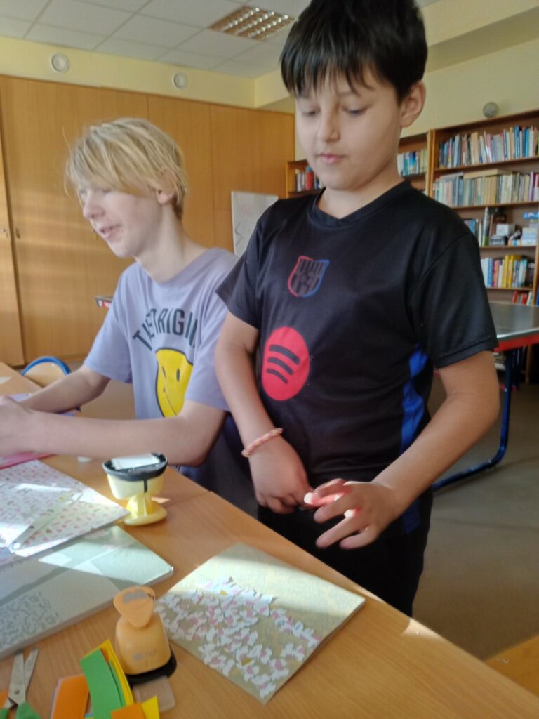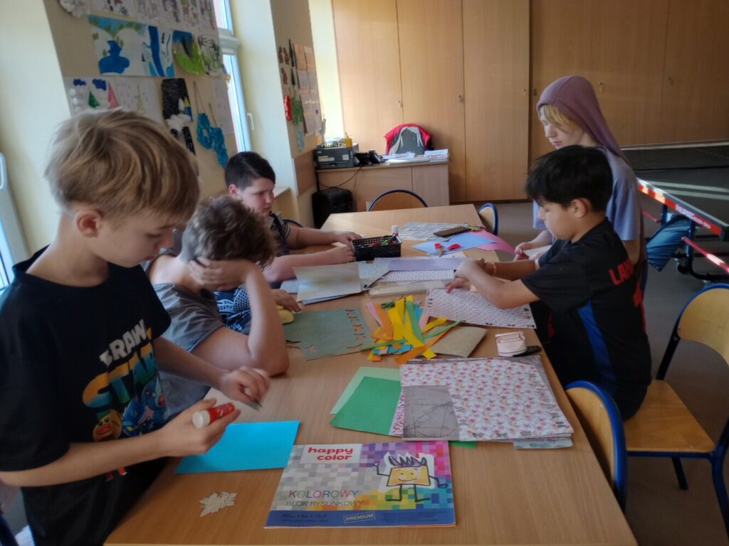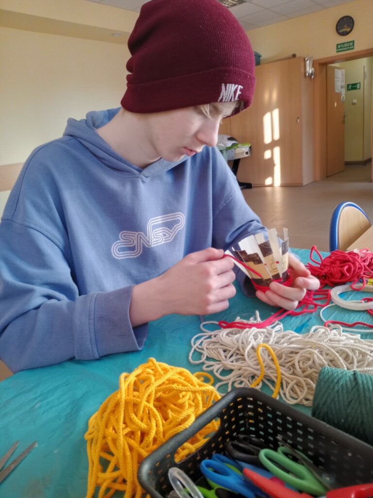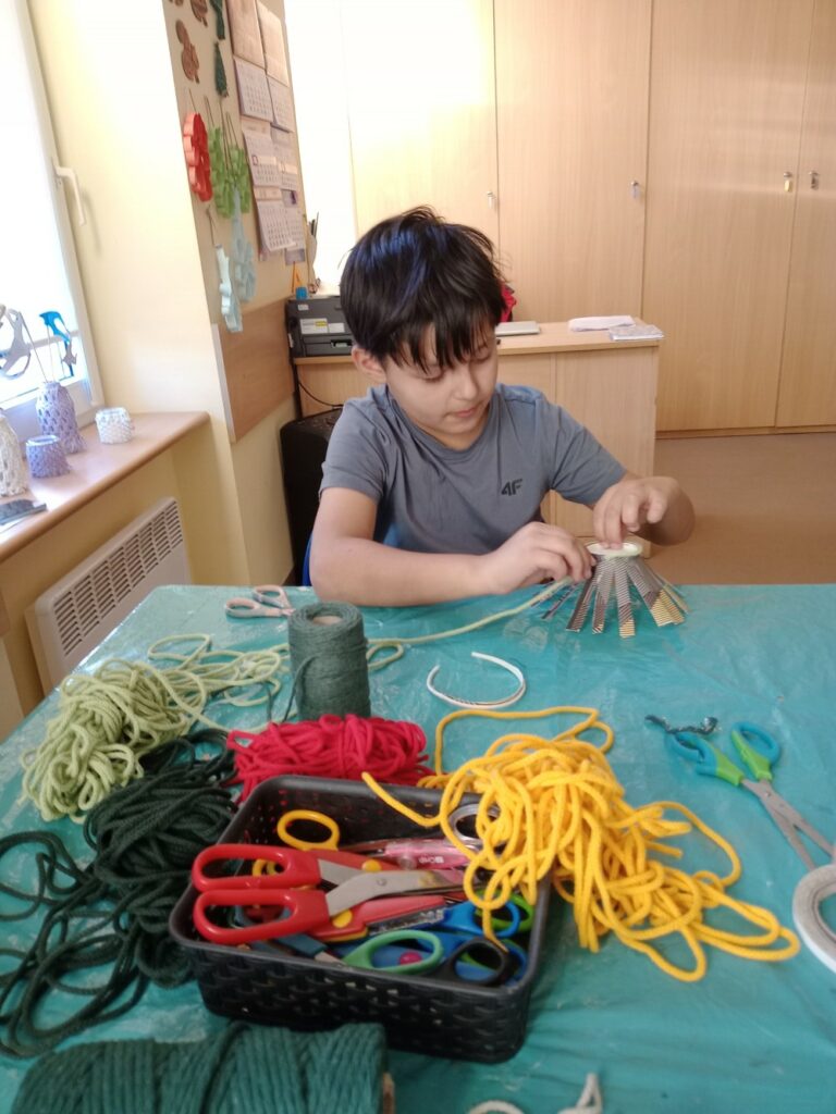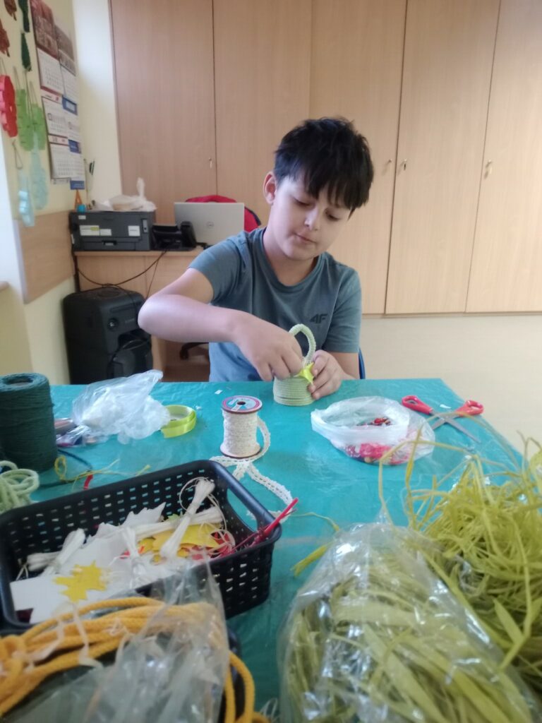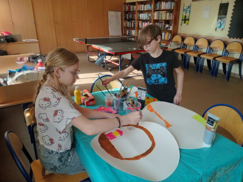 Powstały wielkanocne koszyczki z kubeczków papierowych 🐣, a także wyjątkowe, malowane prace „Kosmos moimi oczami” – pełne wyobraźni i kolorów 🌌🎨. Tworzyliśmy również kartki okolicznościowe z okazji Dnia Kobiet 💐, malowaliśmy ciekawe wzory oraz dekorowaliśmy drewniane zajączki 🐰.