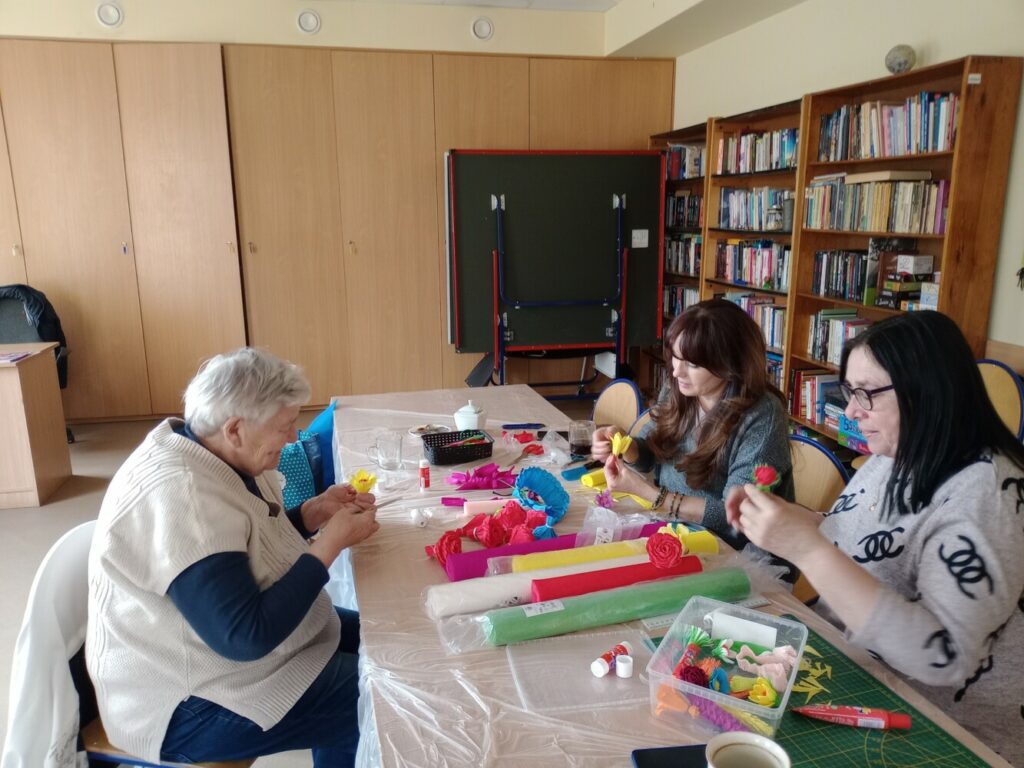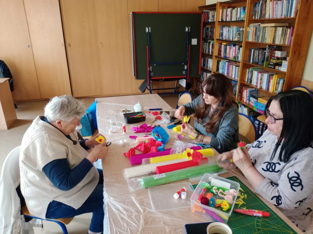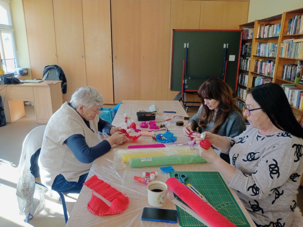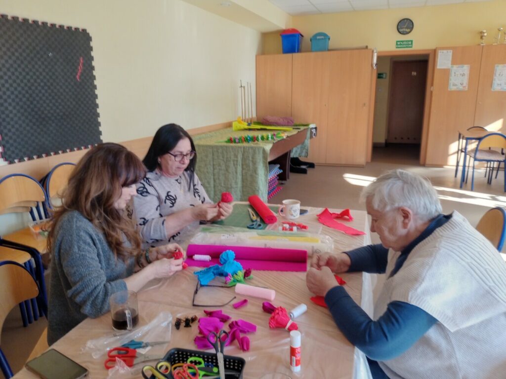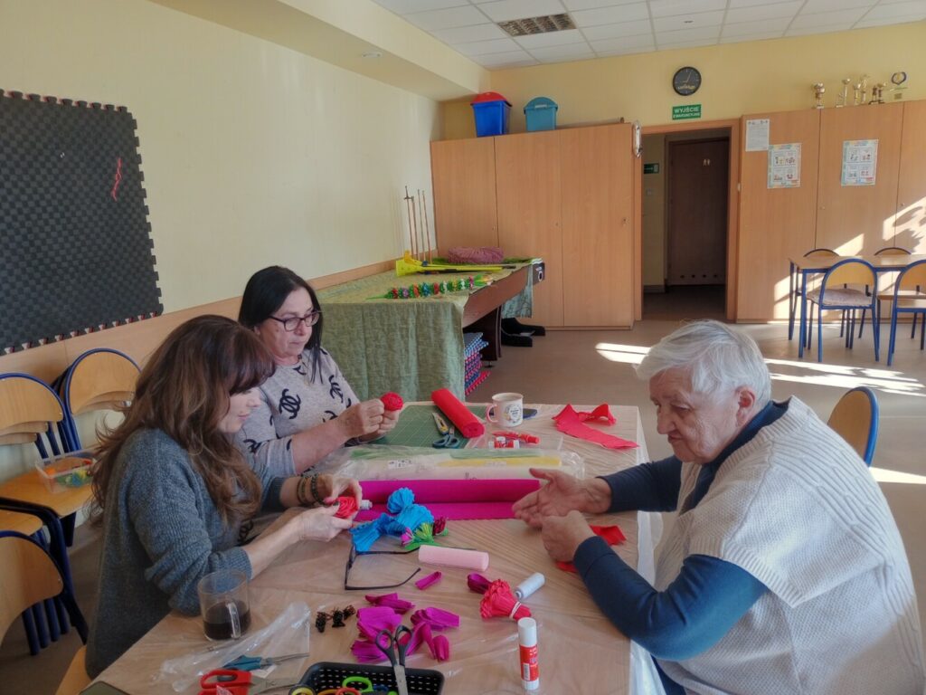 Nie zabrakło również spotkania kobiet, podczas którego wspólnie tworzyłyśmy kwiaty z bibuły 🌼 – wszystko we współpracy z GCKiB w Stolcu.