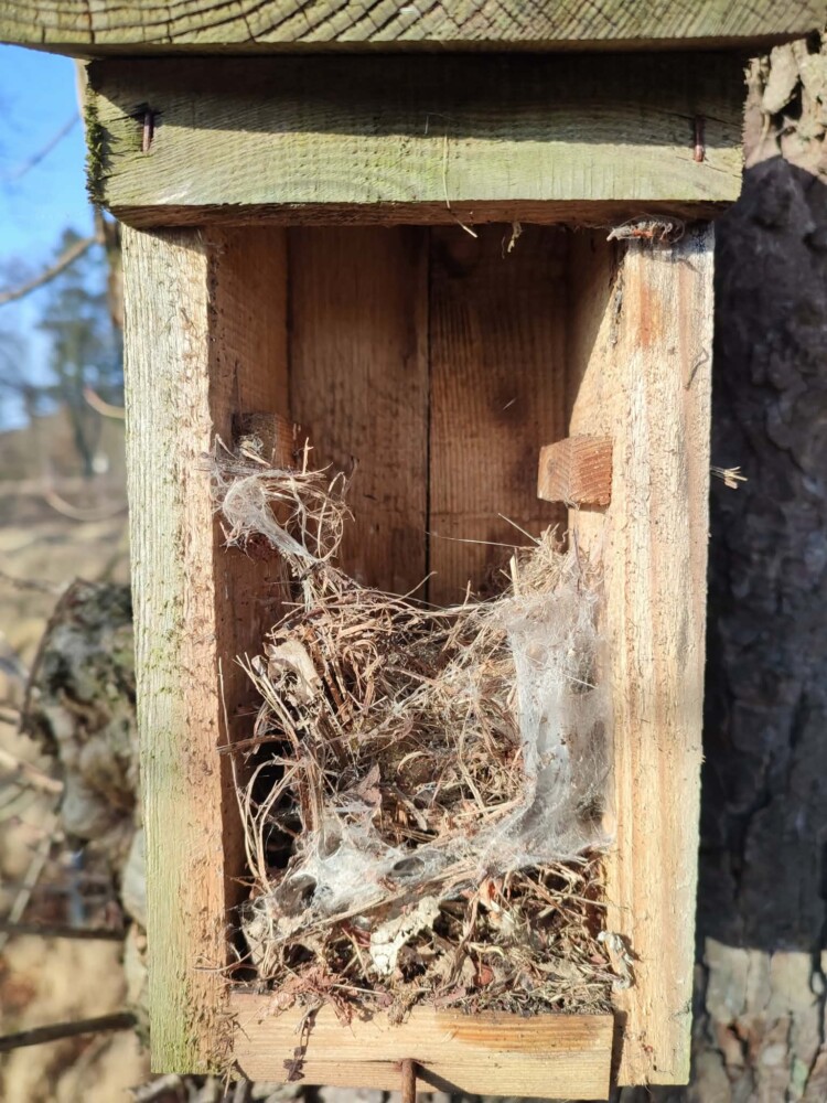 Po drugie – chodzi o bezpieczeństwo przyszłych lokatorów. Gdy nowe gniazda powstają na warstwie starych, w budce robi się zbyt ciasno, a poziom gniazda podnosi się bliżej otworu wlotowego. To ułatwia drapieżnikom dostęp do piskląt. Dodatkowo obecność starego gniazda może zniechęcić ptaki do ponownego zasiedlenia budki.