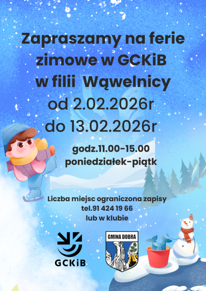 Zapraszamy na Ferie Zimowe do Klubu w Wąwelnicy!