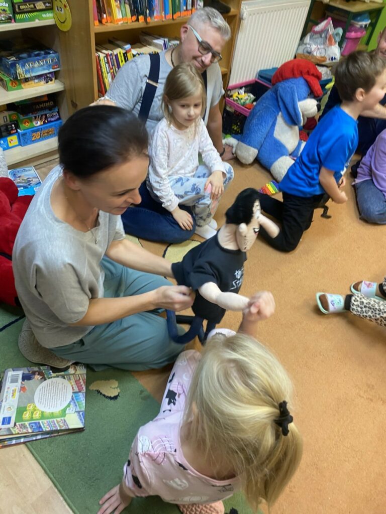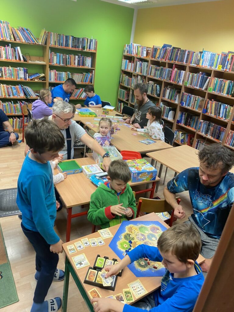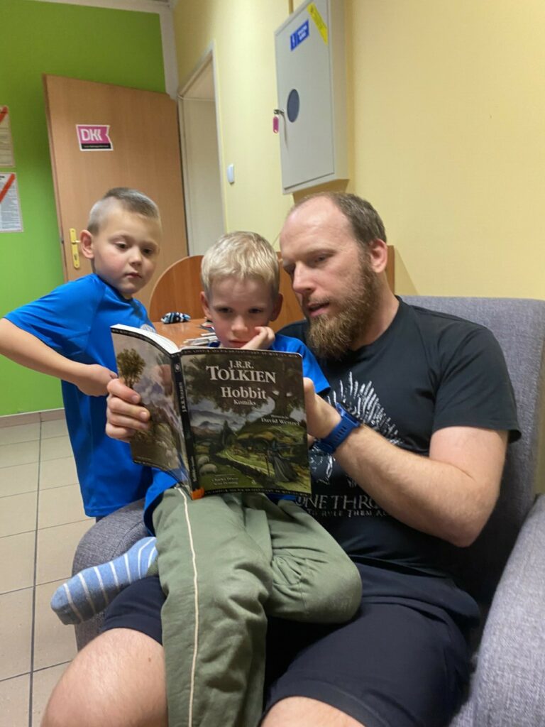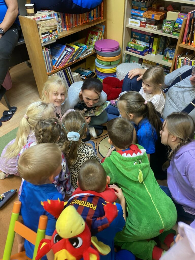 Nie zabrakło książkowych wyzwań, śmiechu do późna w nocy i wspólnego oglądania starych bajek wyświetlanych na ekranie. Atrakcją wieczoru był również Tata Oli – książkowy bohater, który przypomniał wszystkim, że tata to ktoś naprawdę wyjątkowy.