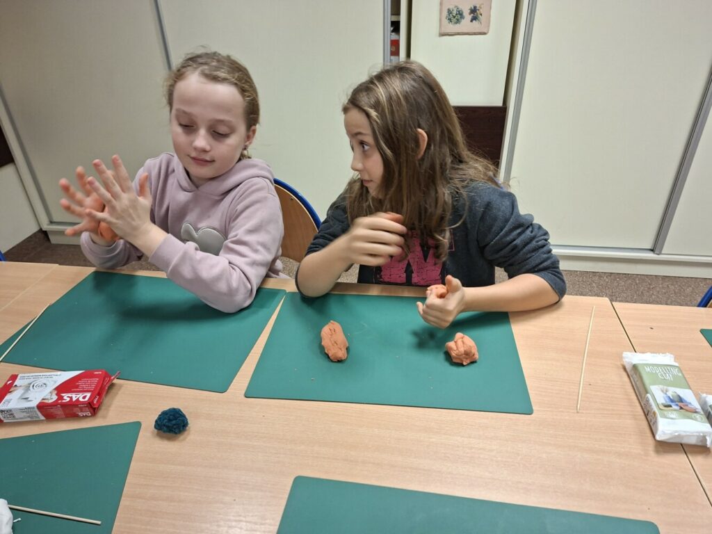 Tak właśnie podczas ostatnich kreatywnych zajęć w Bezrzeczu oddaliśmy się bez reszty zabawie w logiczne myślenie za pomocą puzzli pierściennych i treningowi ręki dzięki lepieniu w glinie. Nasze zabawo-ćwiczenia miały na celu wzmocnienie koordynacji oko-ręka, trenowanie mięśni dłoni, palców i nadgarstków. A ileż było przy tym śmiechu!