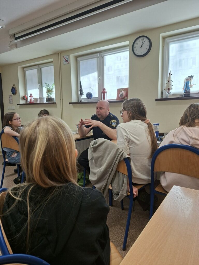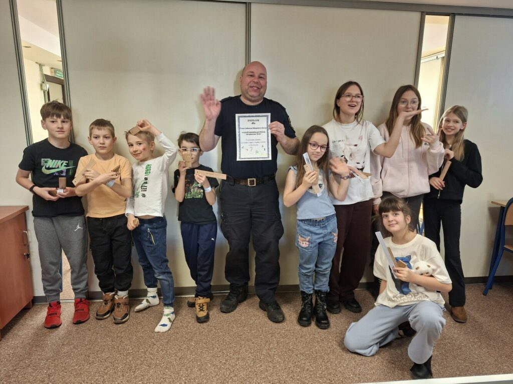 Podstawą sympatycznie spędzanego czasu wolnego jest nasze wspólne bezpieczeństwo, więc nie mogło zabraknąć spotkania z panem Łukaszem Kłopotowskim ze Straży Gminnej.