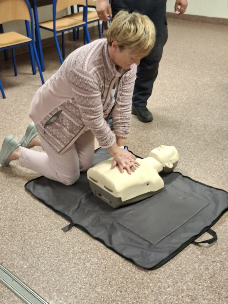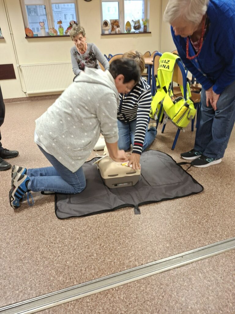 Tym razem w ramach stałego cyklu zajęć w Bezrzeczu, nasi seniorzy mieli okazję dowiedzieć się czym jest pierwsza pomoc, jaka jest kolejność wykonywania poszczególnych czynności przed przybyciem lekarza, pogotowia ratunkowego, lub innych wykwalifikowanych osób.
