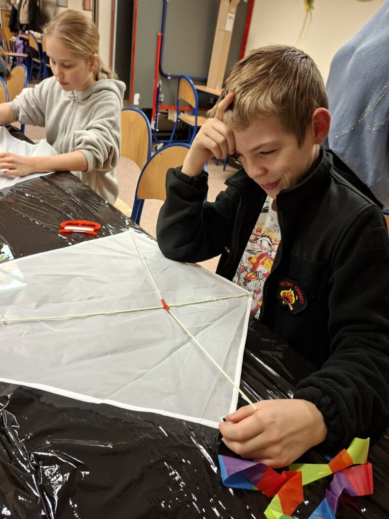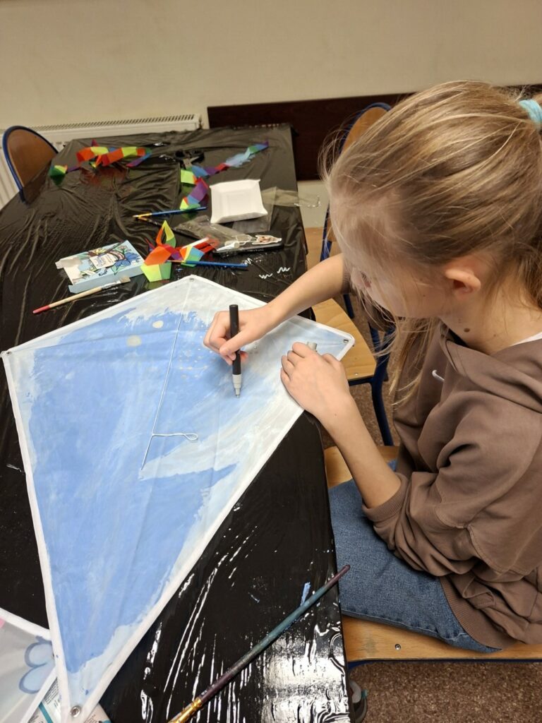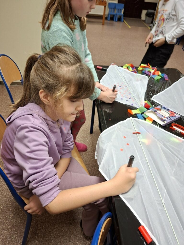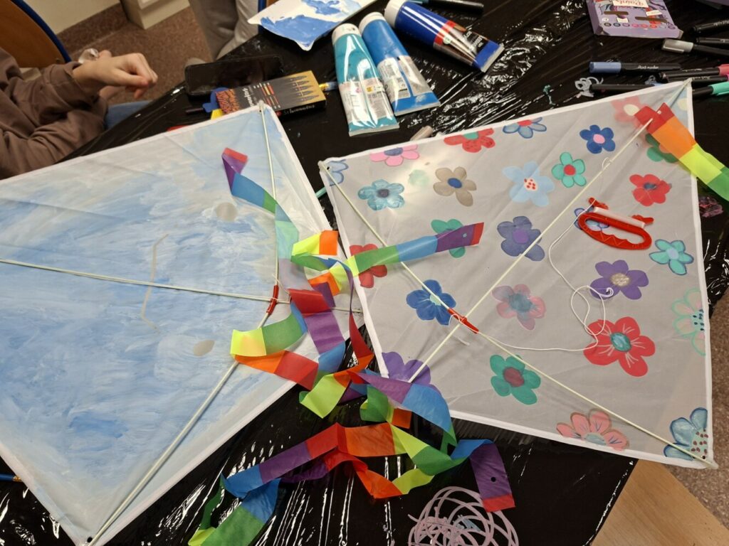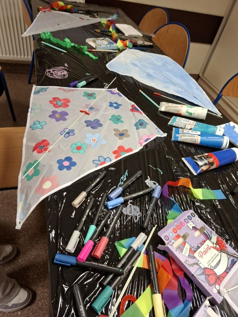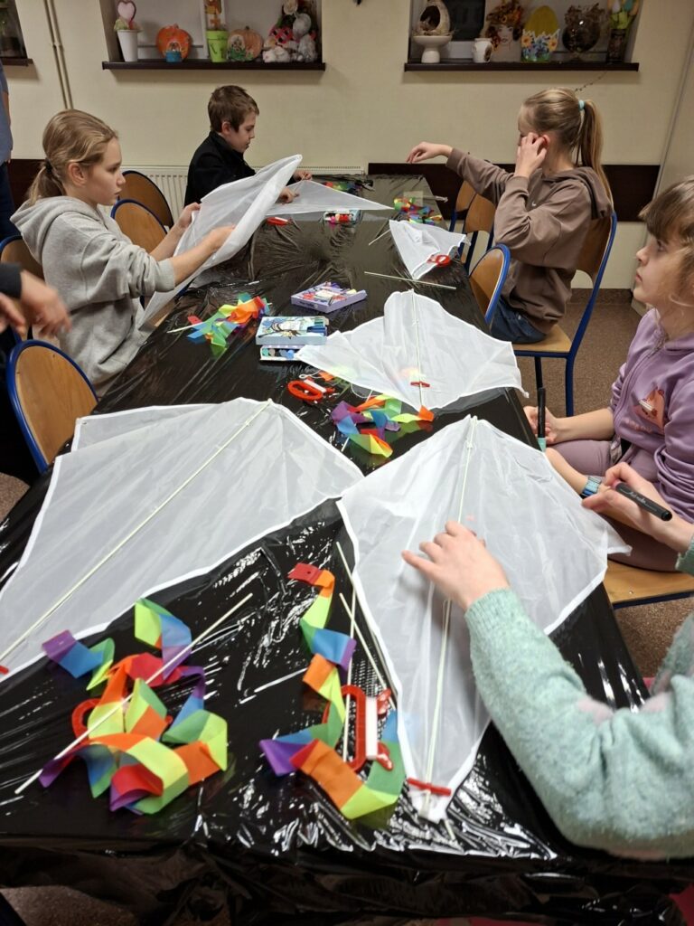 Choć deszcz ostro zacinał, nie przegonił najodważniejszych śmiałków, którzy przybyli do klubu i dekorowali swoje latawce.