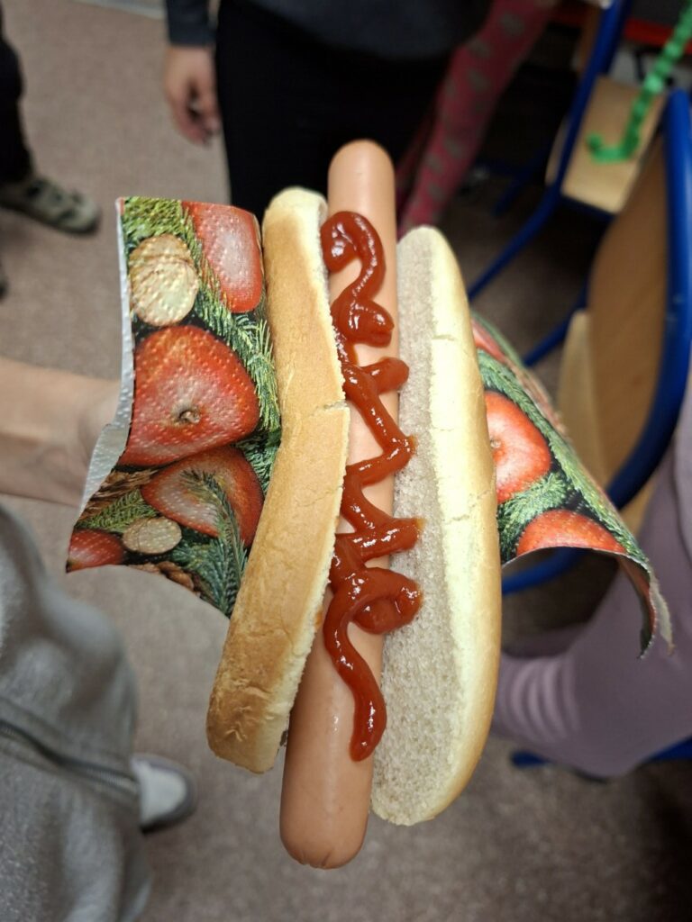 Ale w nagrodę za wykonane zadanie każdy z uczestników został obdarowany upominkiem i poczęstowany przepysznym hot-dogiem.