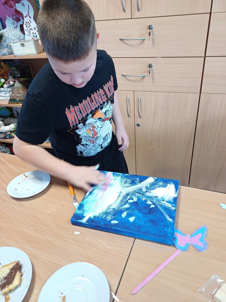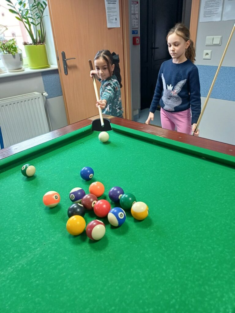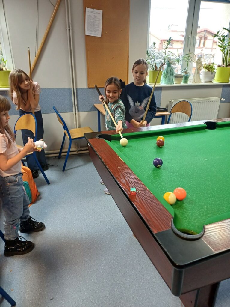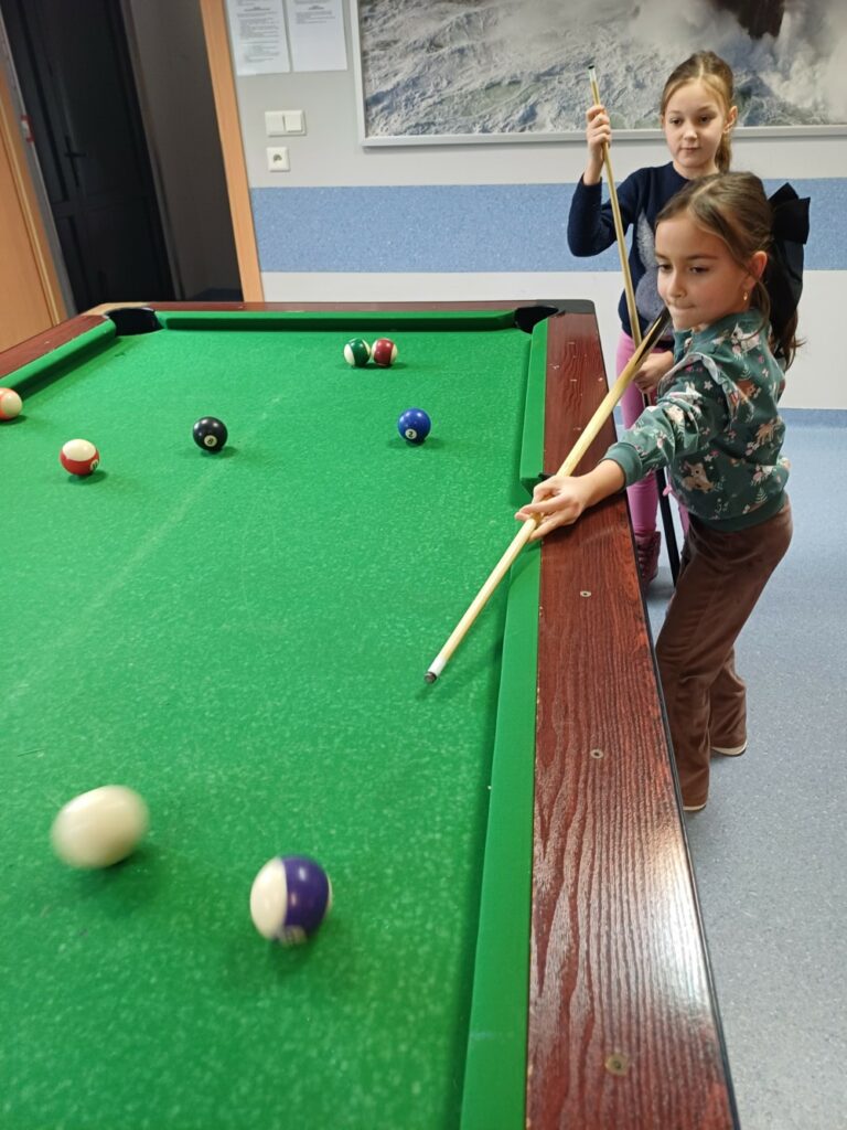 W dalszej części uczestnicy brali udział w zajęciach plastycznych, rozwijając swoją wyobraźnię i kreatywność, a także w aktywnościach sportowych, w tym w grze w pool bilard, która sprawiła dzieciom mnóstwo radości 🎱😄