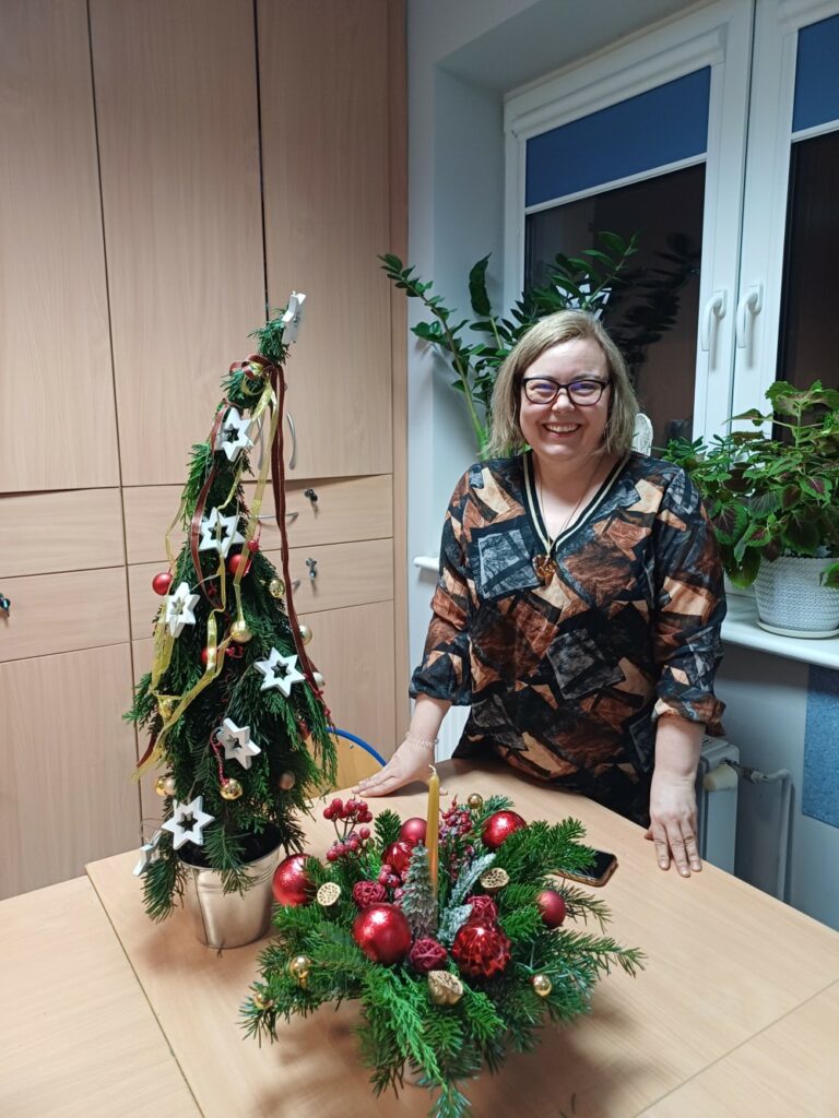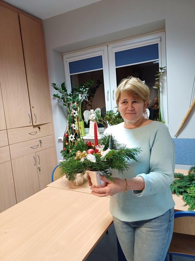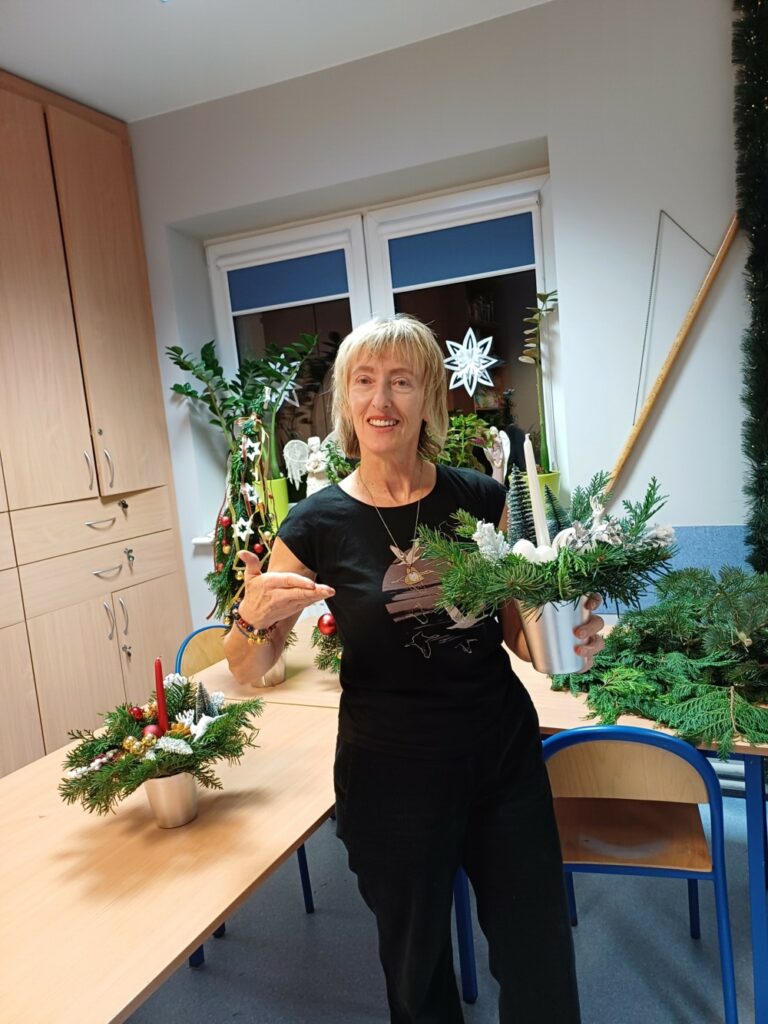 Zajęcia przebiegały w miłej, sprzyjającej atmosferze, pełnej inspiracji i wymiany pomysłów. Powstałe stroiki doskonale sprawdzą się jako ozdoba świątecznego stołu lub wyjątkowy, własnoręcznie wykonany prezent.