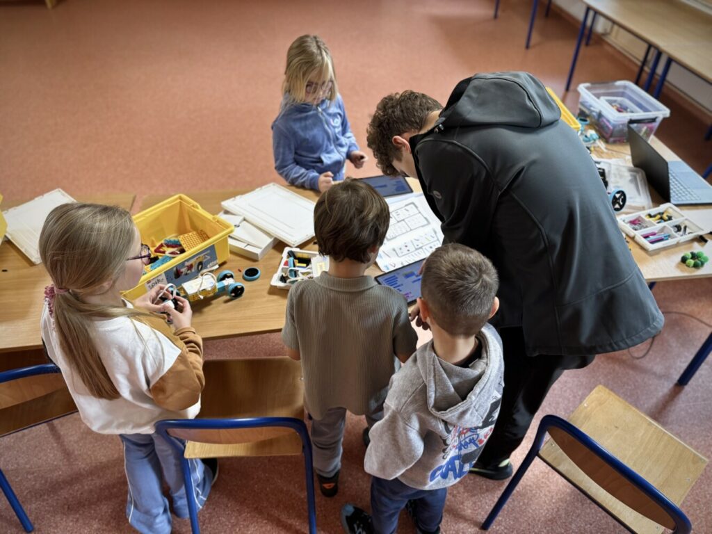 Za nami pierwsze zajęcia najmłodszej grupy dzieci kl. 1-3 podczas, których dzieci poznały zasady działania zestawów.