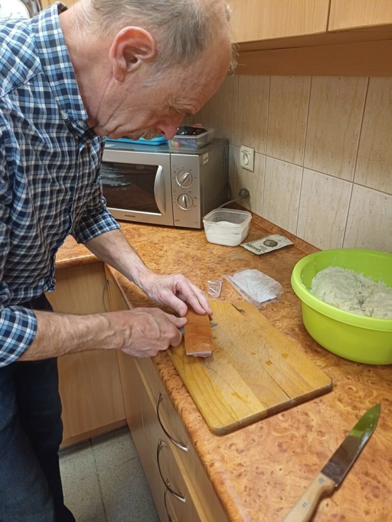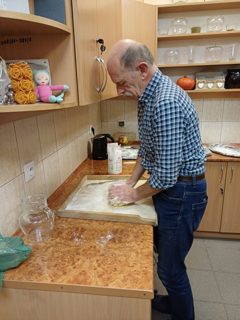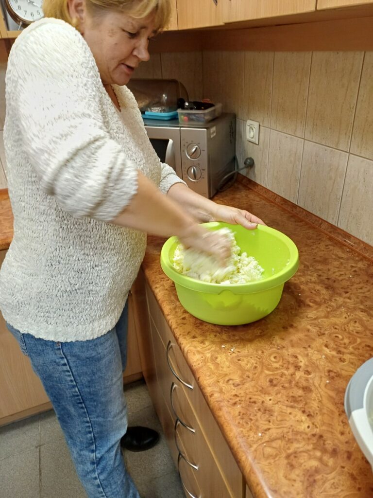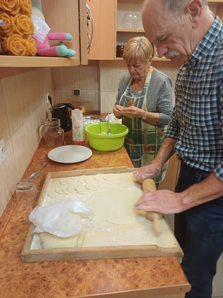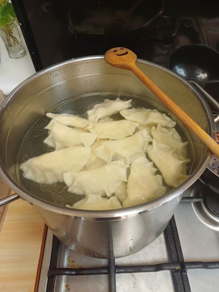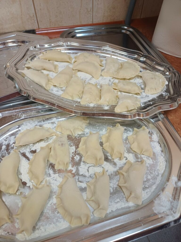 Uczestnicy mieli okazję poznać cały proces ich przygotowania – od wyrabiania ciasta, przez lepienie, aż po gotowanie i, oczywiście, wspólną degustację. Wśród gotujących znalazł się również jeden pan, który z zaangażowaniem pomagał przy wyrabianiu ciasta i chętnie dzielił się swoim kulinarnym doświadczeniem. 👨‍🍳