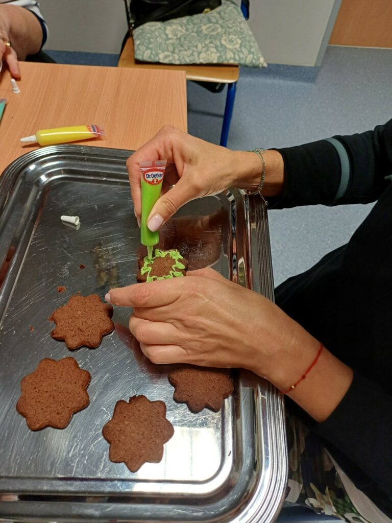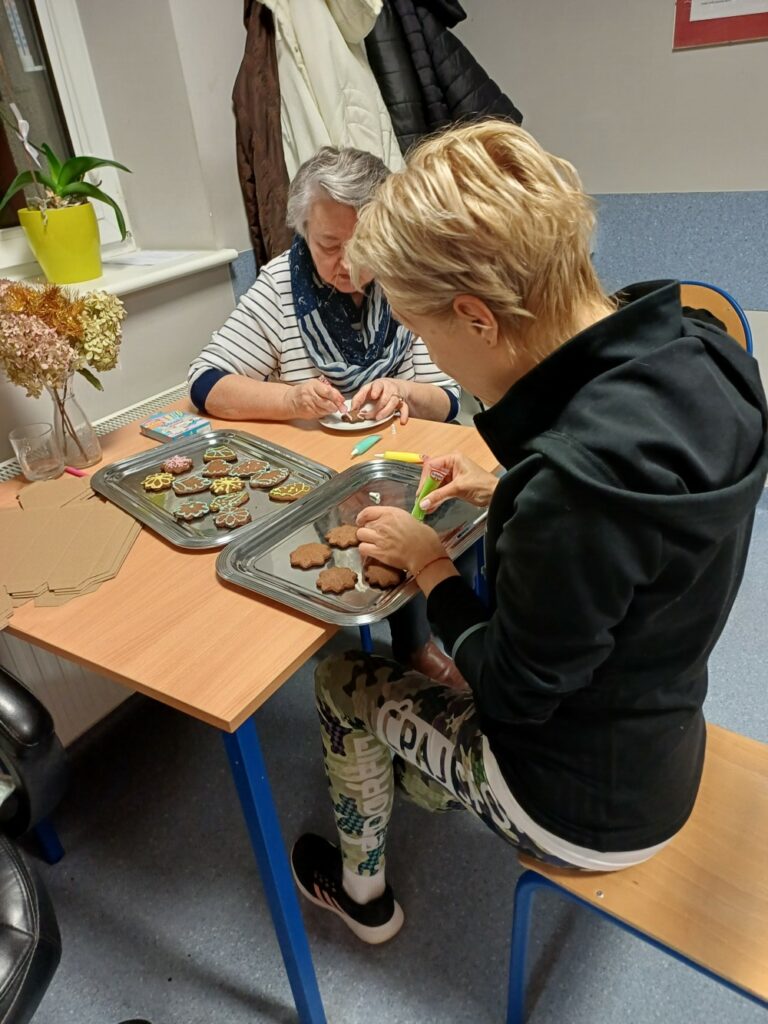 Po upieczeniu przyszedł czas na najprzyjemniejszą część – dekorowanie. Kolorowe lukry, posypki oraz kreatywne pomysły sprawiły, że każdy pierniczek był niepowtarzalny. Warsztatom towarzyszyła serdeczna, ciepła atmosfera oraz rozmowy przy wspólnym stole.