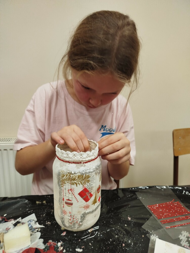 W piątek znów spotkaliśmy się z dziećmi na kreatywnych warsztatach i… przepadliśmy w świecie brokatu, kleju i świątecznych serwetek. Razem stworzyliśmy urocze, ręcznie robione lampiony świąteczne ze słoików metodą decoupage.