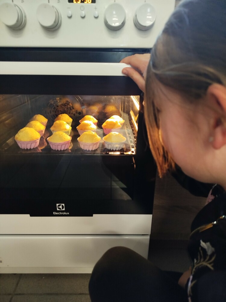 Najwięcej radości sprawił oczywiście moment wyjmowania z piekarnika złocistych, pachnących babeczek, które wyglądały i smakowały wspaniale.