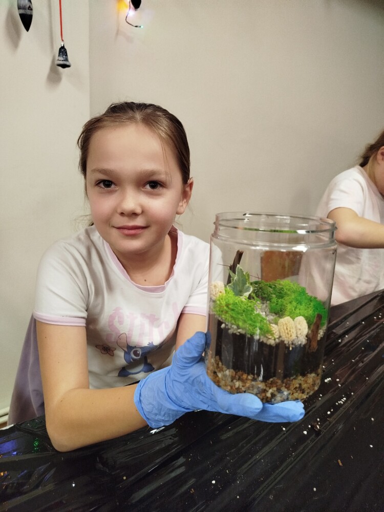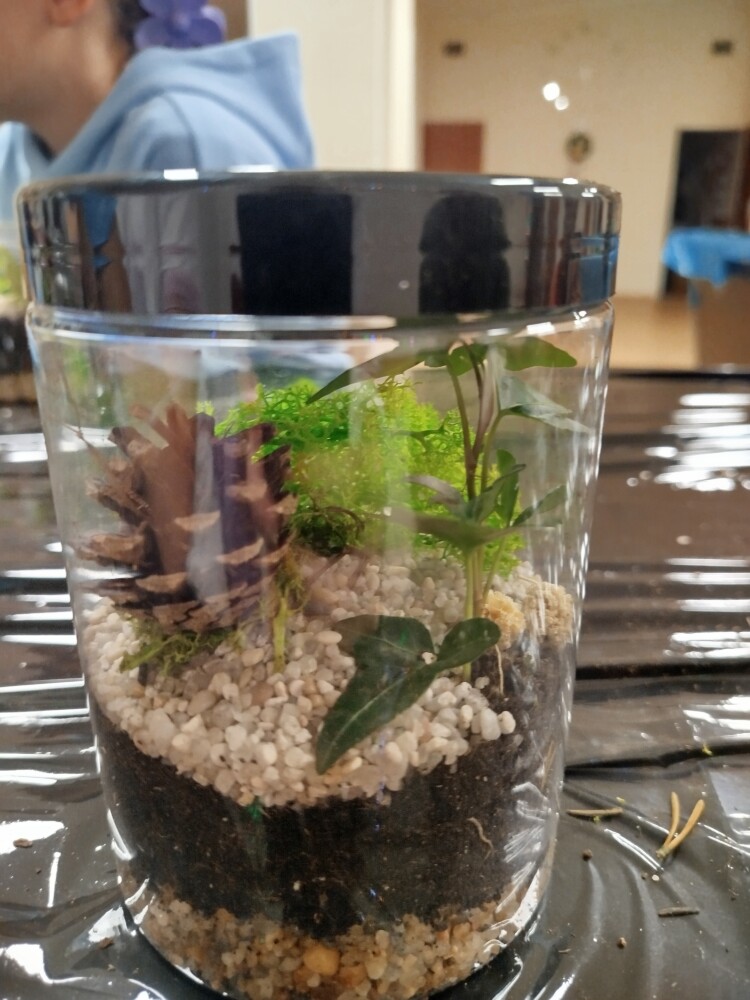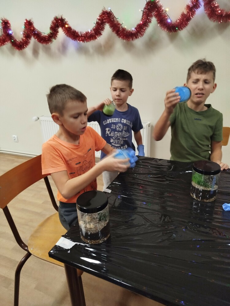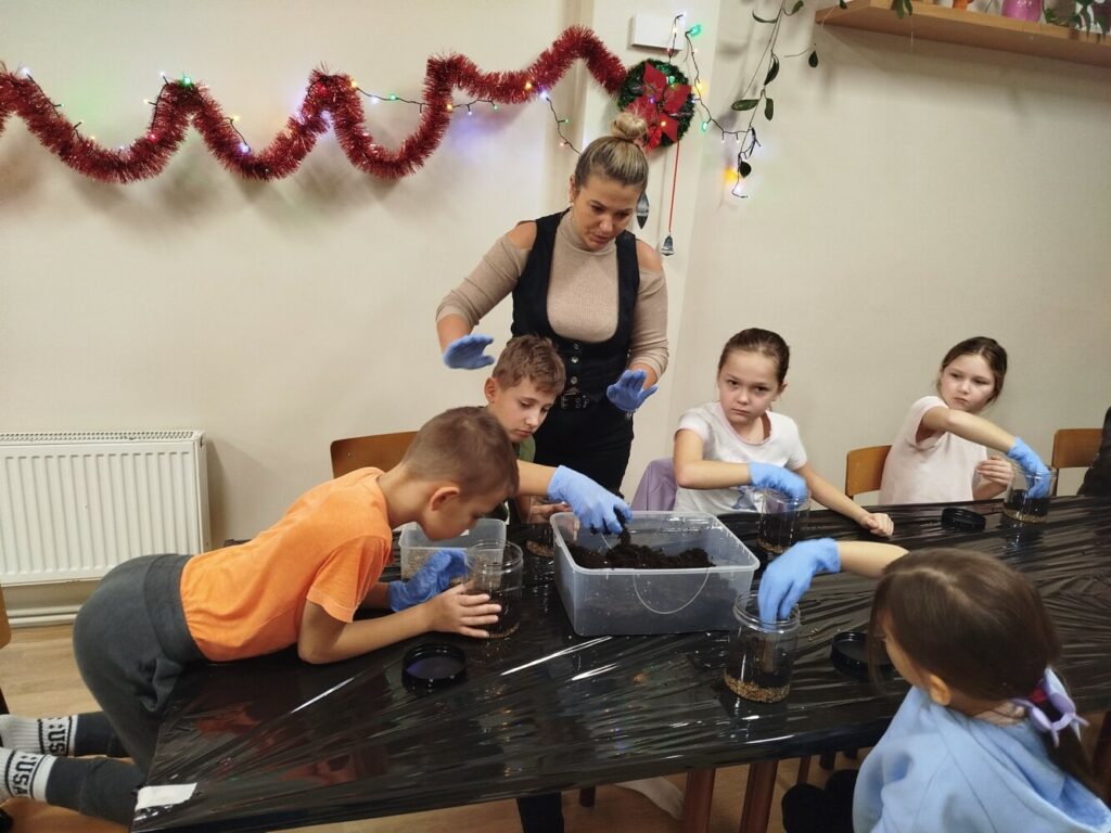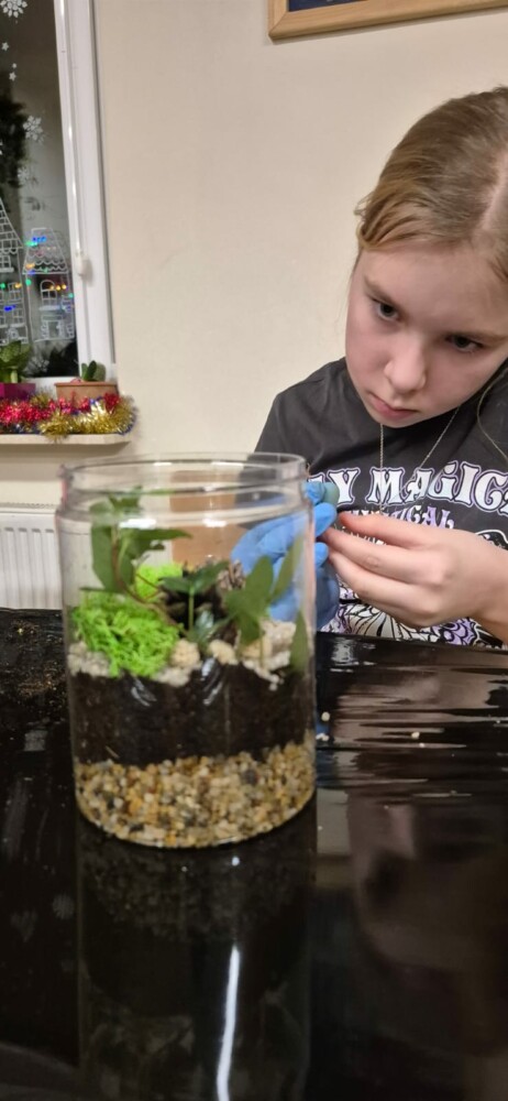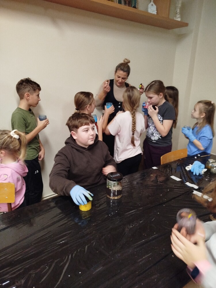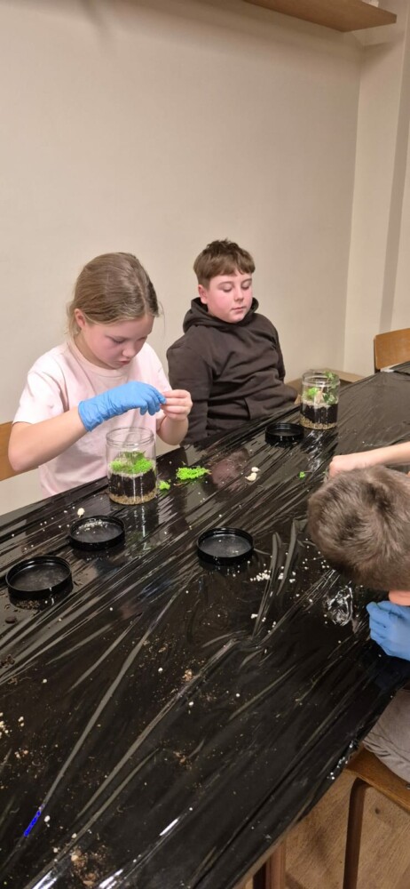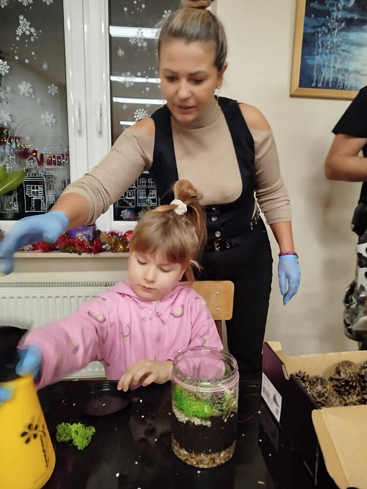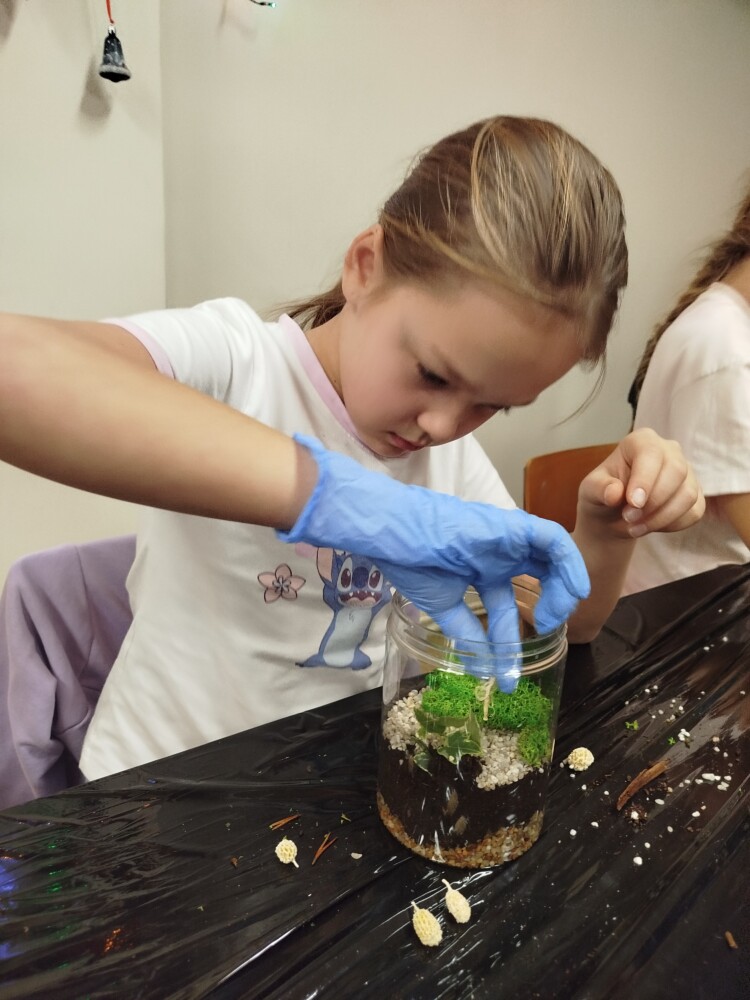 Podczas zajęć uczestnicy wykonywali lasy w słoikach, ucząc się w praktyce, jak działają rośliny oraz dlaczego warto wprowadzać zieleń do przestrzeni domowej. Warsztaty miały charakter praktyczny i kreatywny, dzięki czemu dzieci mogły samodzielnie doświadczyć, że edukacja ekologiczna może być ciekawa i angażująca.