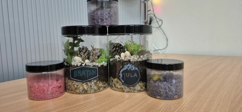 Kolejnym elementem spotkania było przygotowanie naturalnych mieszanek do kąpieli, powstałych z prostych składników. Zajęcia zwracały uwagę na ograniczanie chemii, mądre korzystanie z zasobów oraz zmniejszanie ilości odpadów w codziennym życiu.