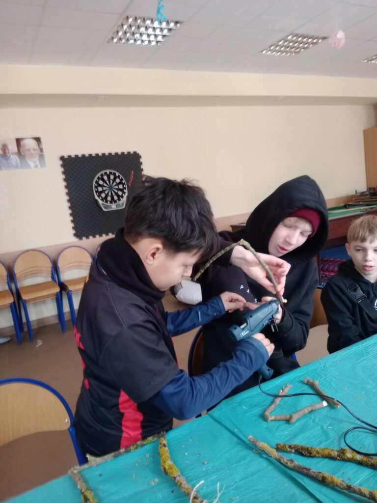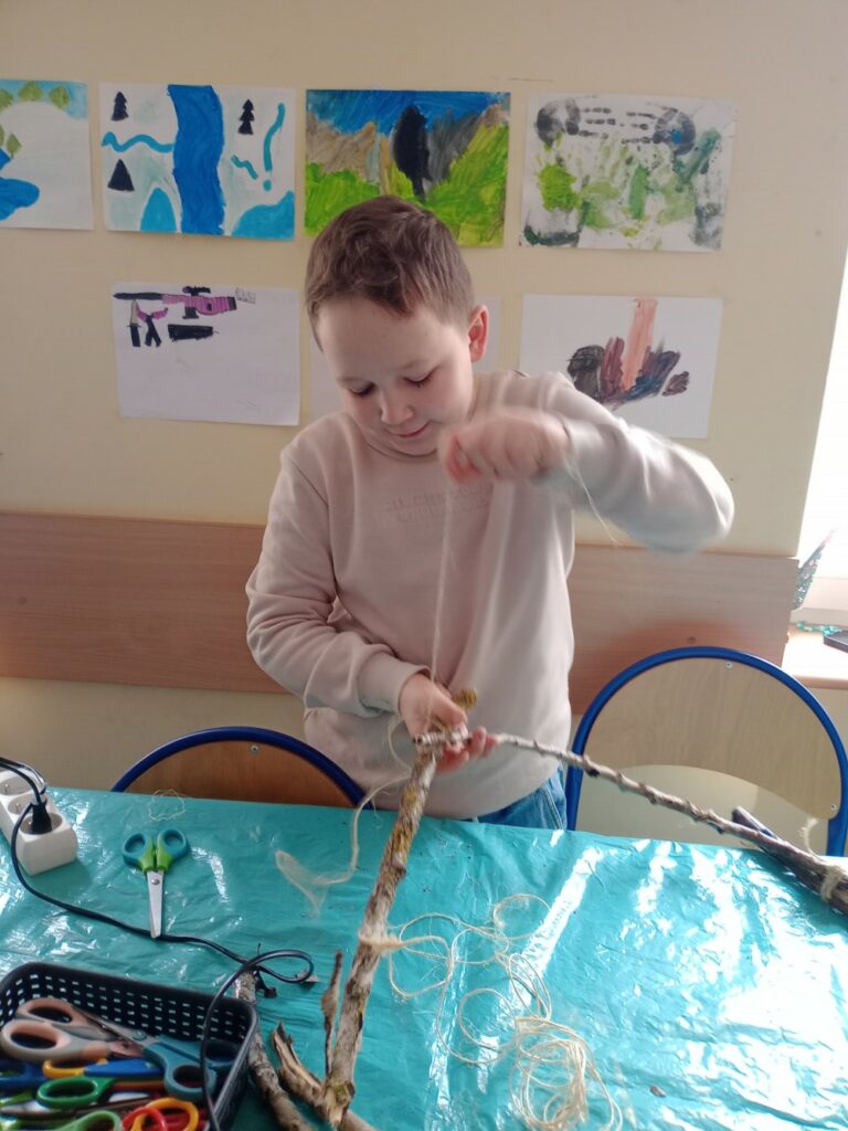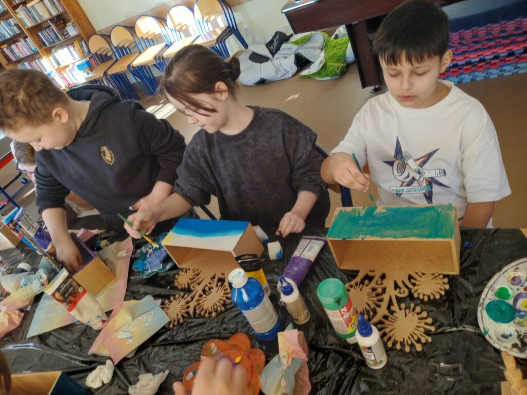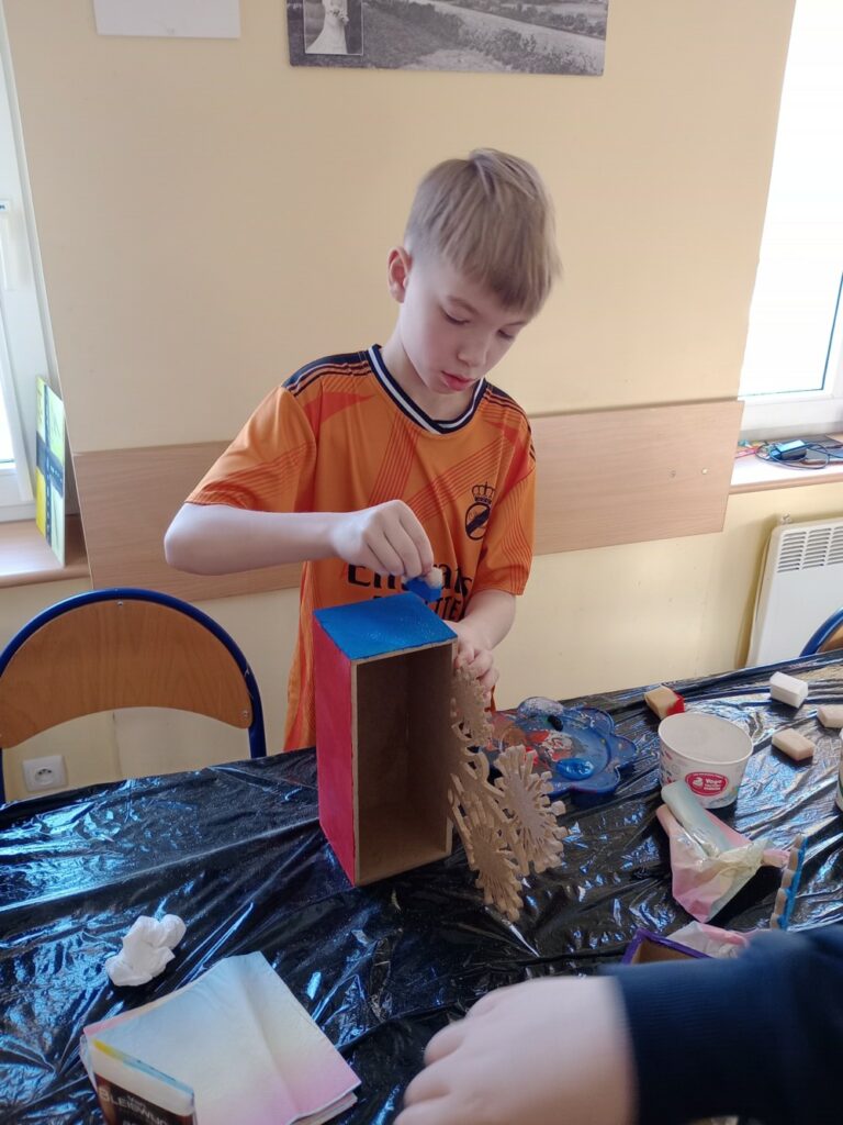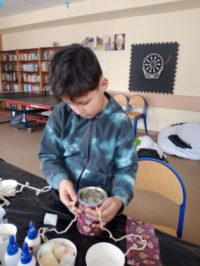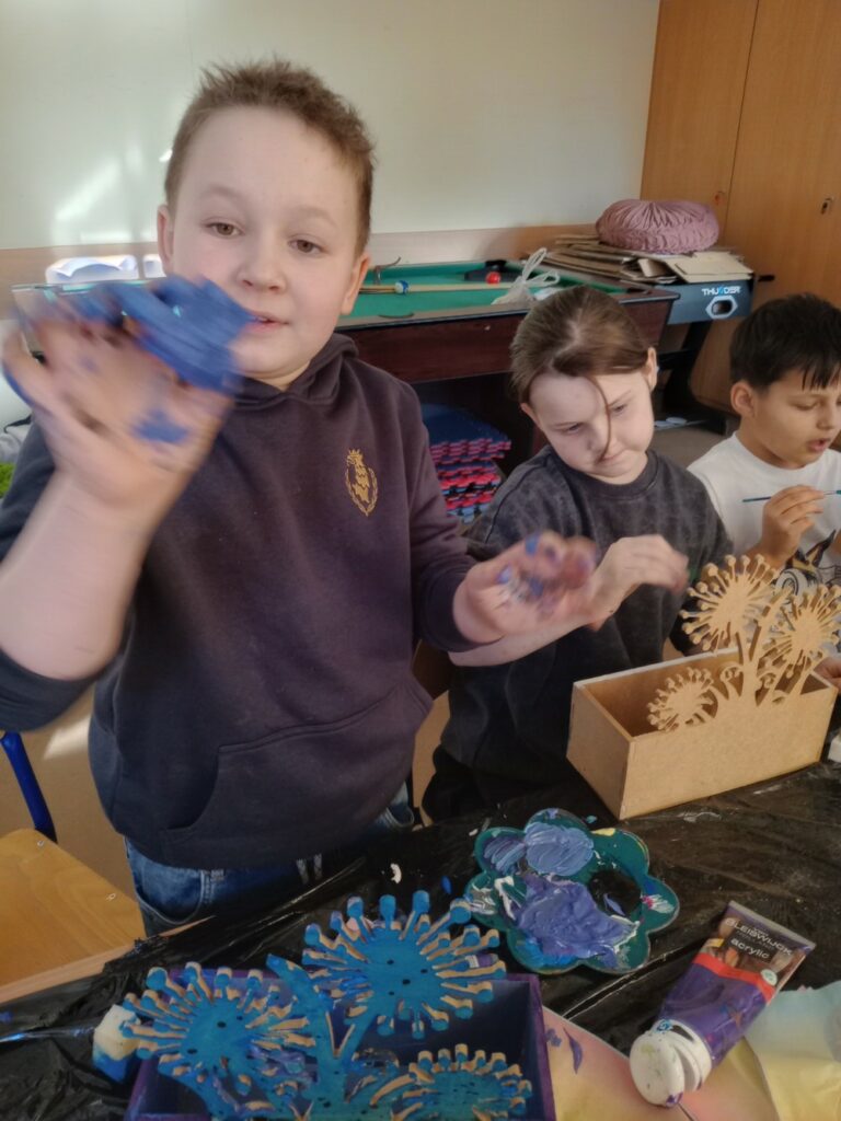 Za nami 3 dni ferii pełne kreatywności, zabawy i uśmiechów. Poniedziałek upłynął pod znakiem decoupage, dzieci ozdabiały puszki według własnych pomysłów. Każda praca była wyjątkowa! Wtorek to majsterkowanie – sklejaliśmy drewniane skrzynki, a następnie dzieci malowały je farbami, puszczając wodze fantazji. Środa była bardzo naturalna. Podczas spaceru dzieci same nazbierały patyki, z których powstały piękne ramki, ozdobione według własnego uznania. Nie zabrakło też sportowych emocji – gra w tenisa stołowego dostarczyła wszystkim mnóstwo radości!
