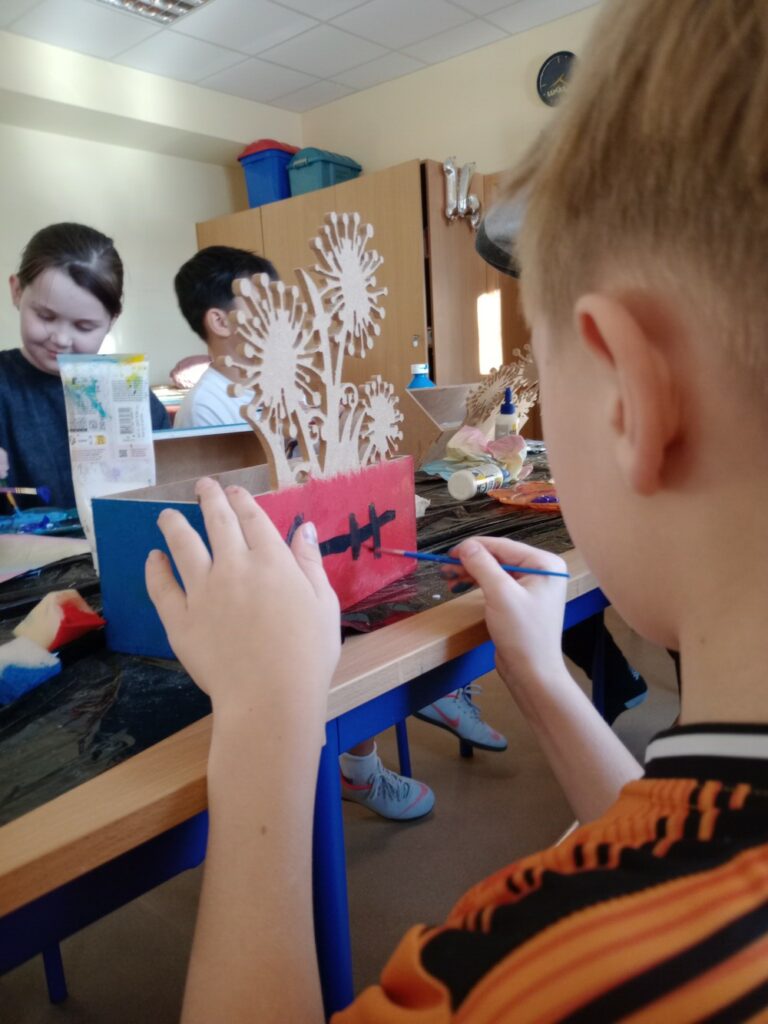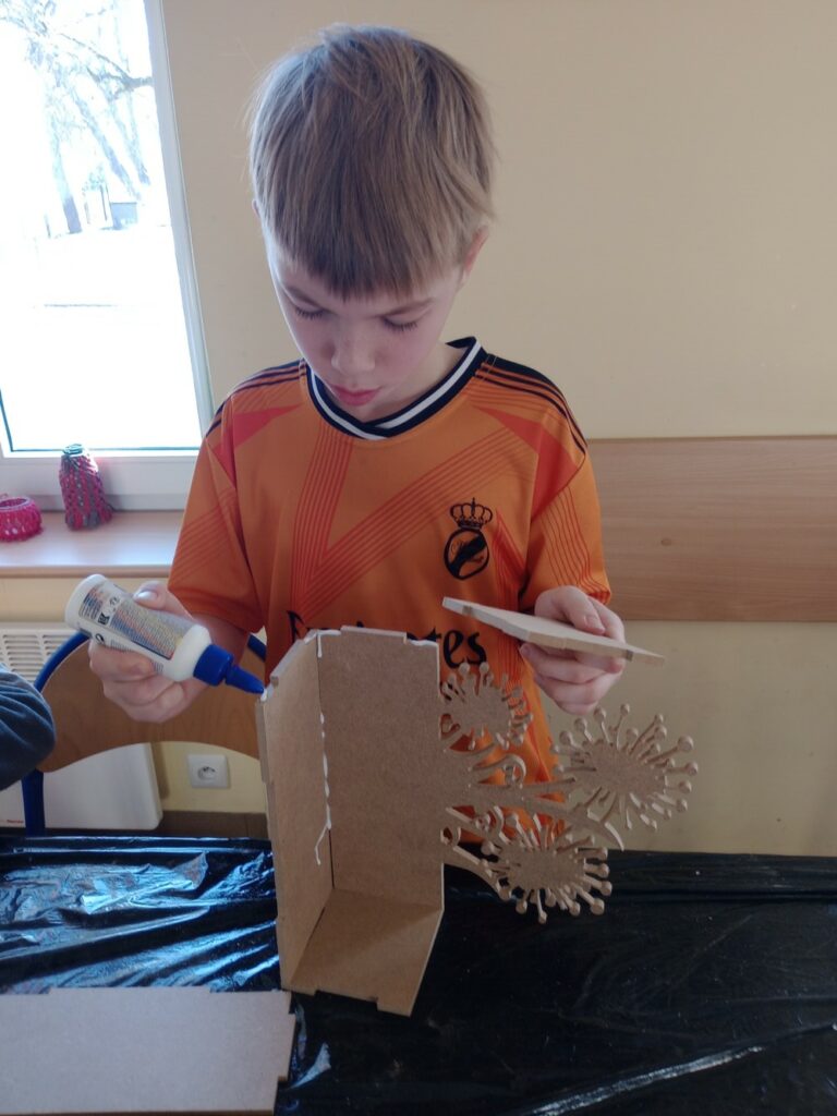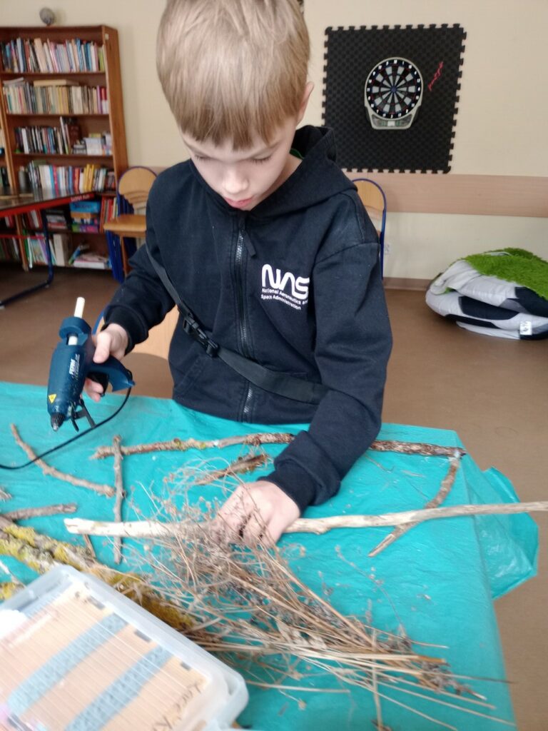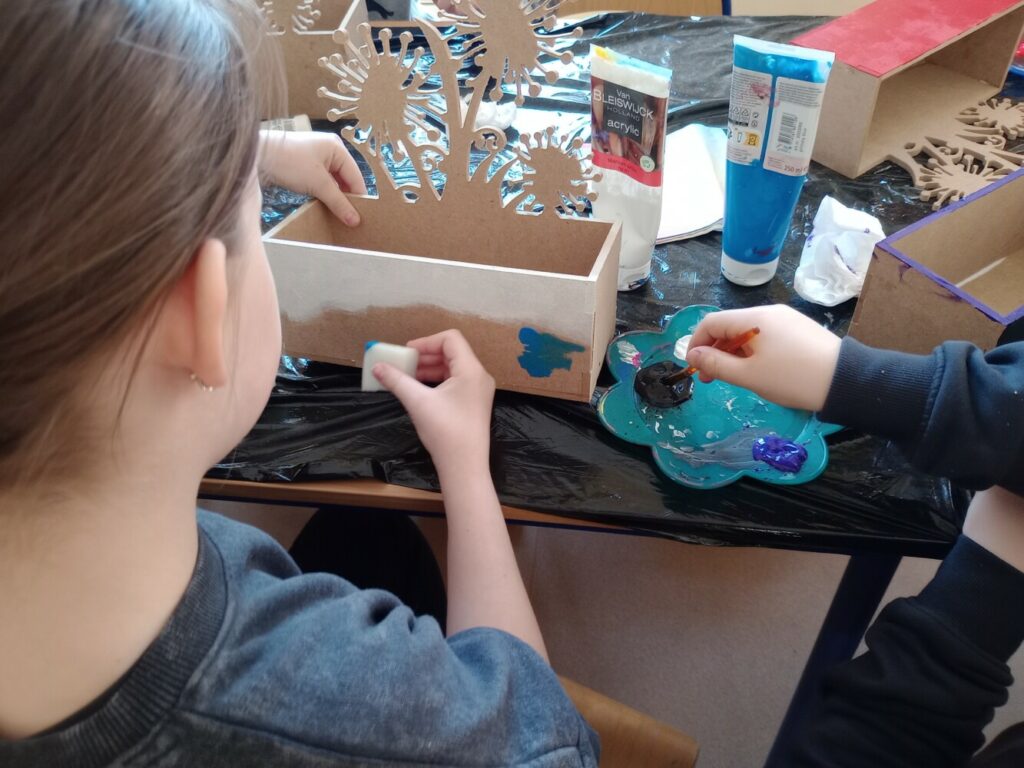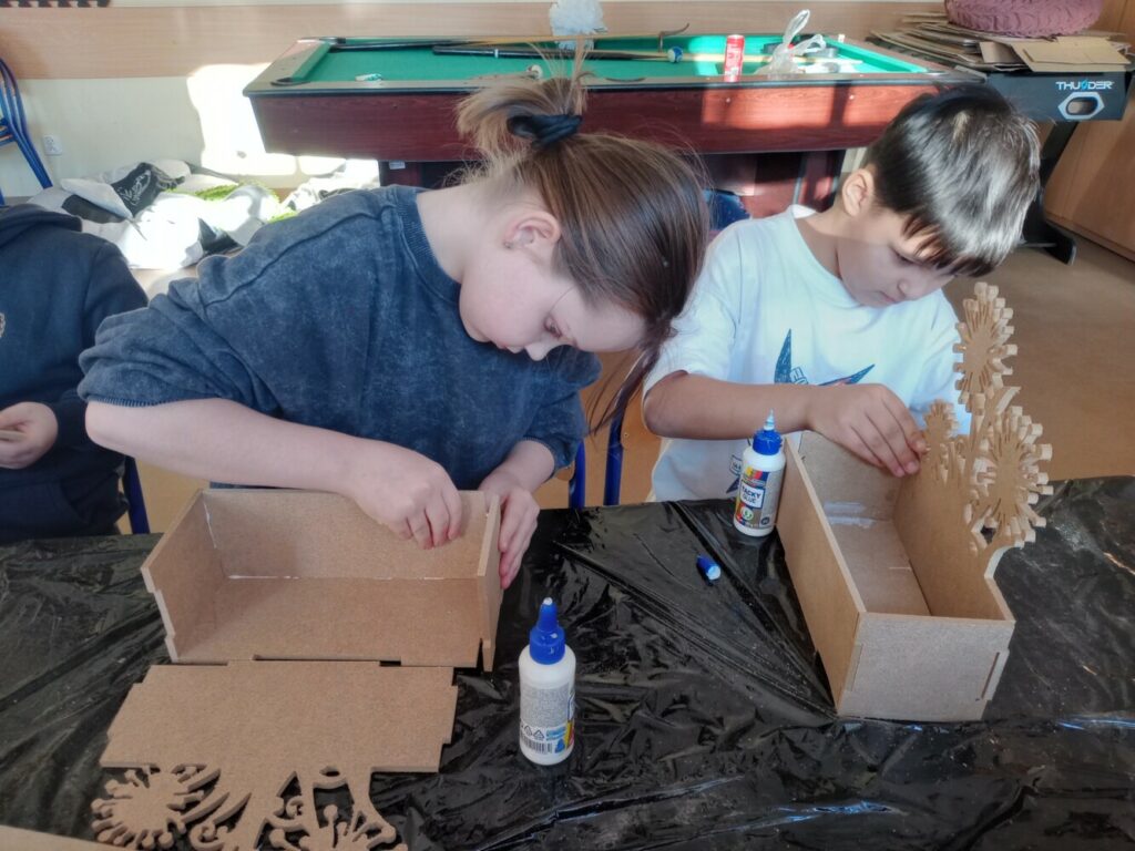 Za nami 3 dni ferii pełne kreatywności, zabawy i uśmiechów. Poniedziałek upłynął pod znakiem decoupage, dzieci ozdabiały puszki według własnych pomysłów. Każda praca była wyjątkowa! Wtorek to majsterkowanie – sklejaliśmy drewniane skrzynki, a następnie dzieci malowały je farbami, puszczając wodze fantazji. Środa była bardzo naturalna. Podczas spaceru dzieci same nazbierały patyki, z których powstały piękne ramki, ozdobione według własnego uznania. Nie zabrakło też sportowych emocji – gra w tenisa stołowego dostarczyła wszystkim mnóstwo radości!