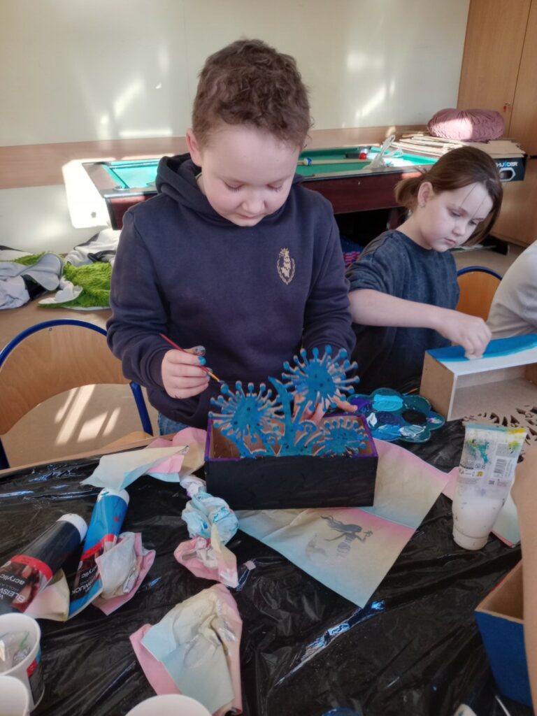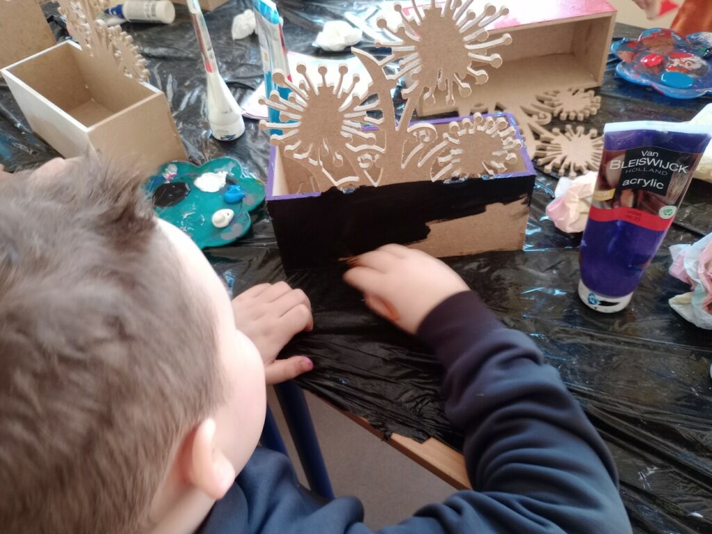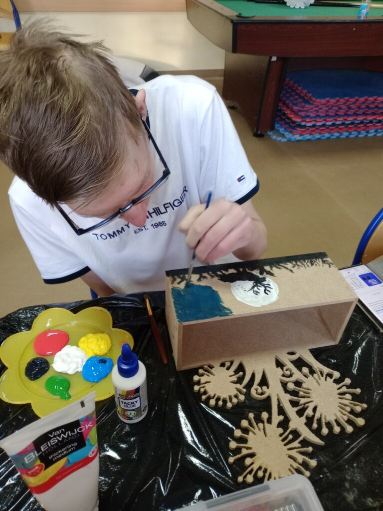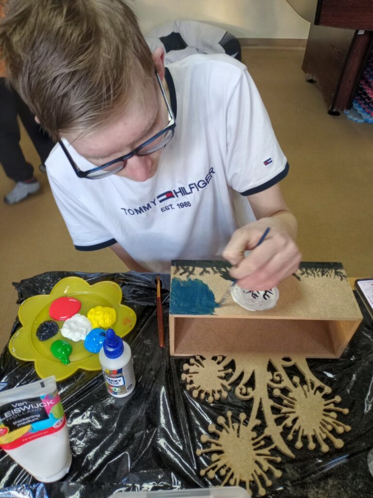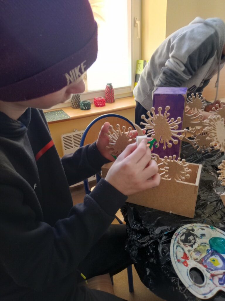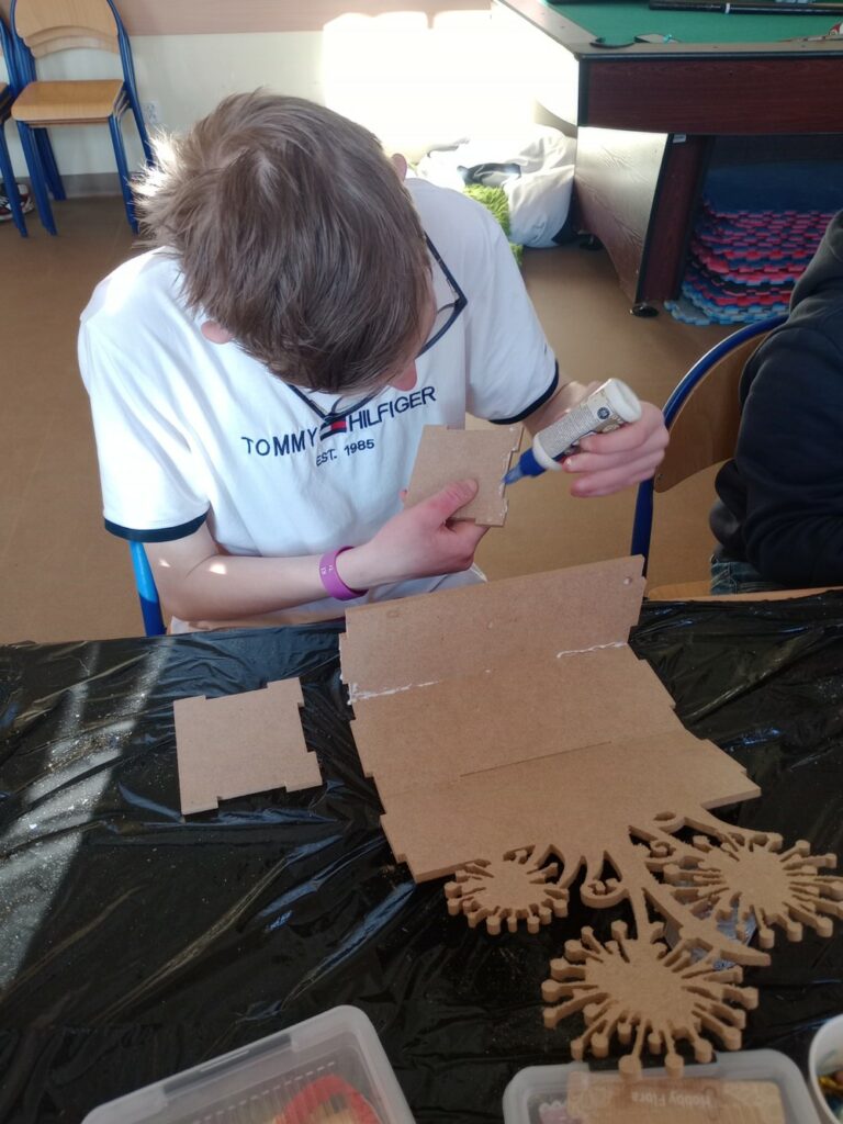Za nami 3 dni ferii pełne kreatywności, zabawy i uśmiechów. Poniedziałek upłynął pod znakiem decoupage, dzieci ozdabiały puszki według własnych pomysłów. Każda praca była wyjątkowa! Wtorek to majsterkowanie – sklejaliśmy drewniane skrzynki, a następnie dzieci malowały je farbami, puszczając wodze fantazji. Środa była bardzo naturalna. Podczas spaceru dzieci same nazbierały patyki, z których powstały piękne ramki, ozdobione według własnego uznania. Nie zabrakło też sportowych emocji – gra w tenisa stołowego dostarczyła wszystkim mnóstwo radości!