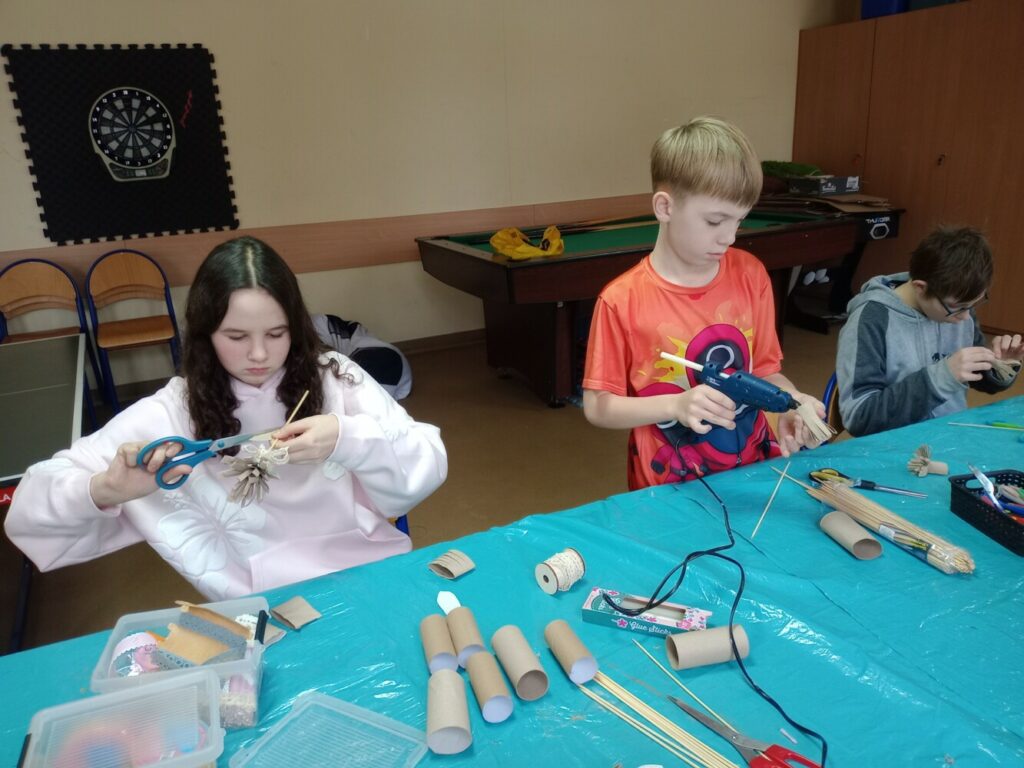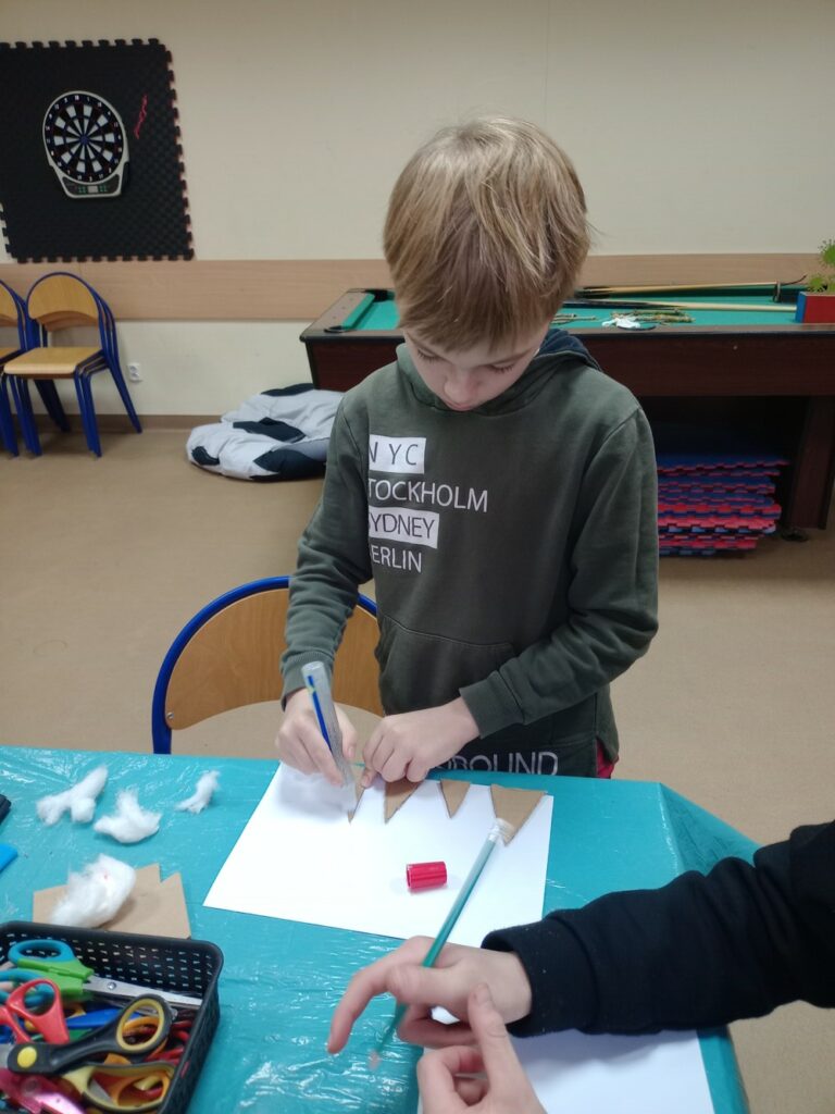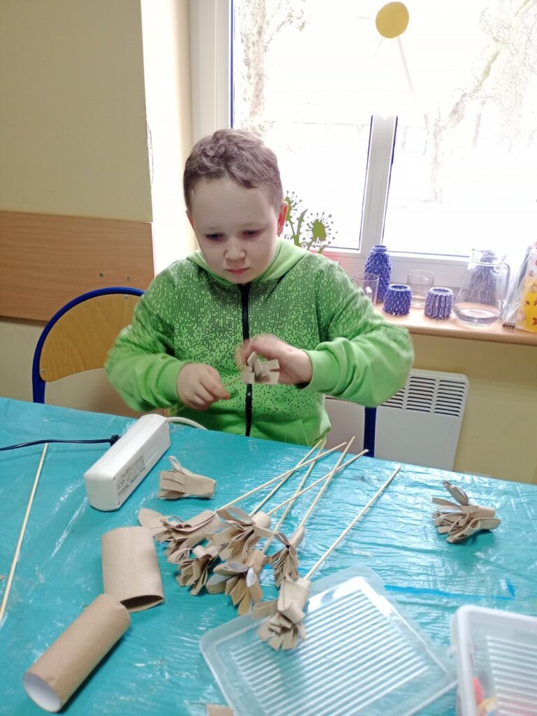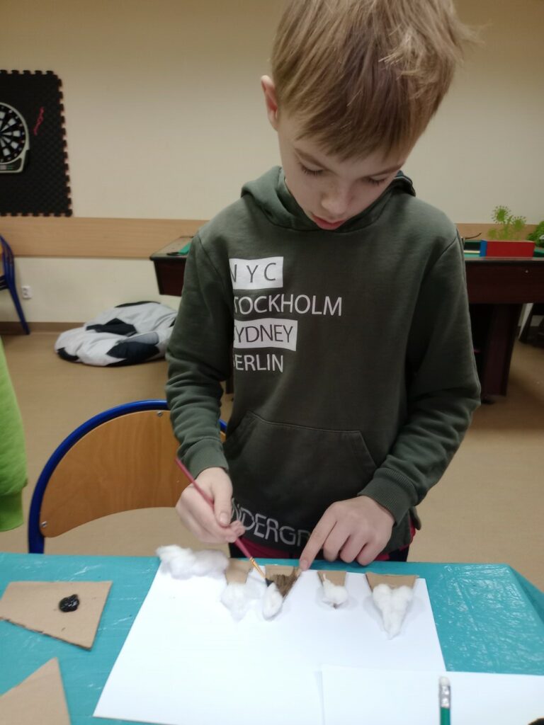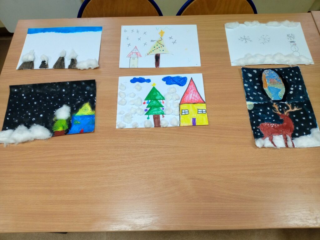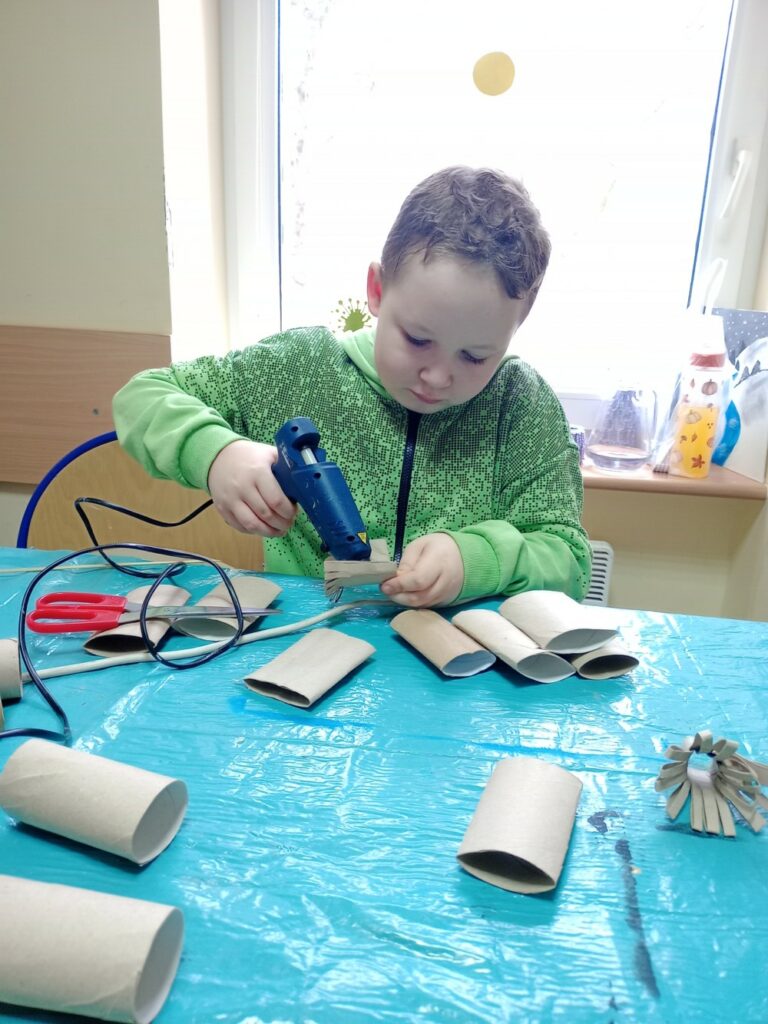 Kolejne dni ferii upłynęły w spokojnej atmosferze. W czwartek ilustrowaliśmy nasze wyobrażenia o zimie – dzieci tworzyły obrazki uwieczniające to, jak postrzegają mroźną porę roku. Tego dnia odbyły się również warsztaty kulinarne, podczas których przygotowywaliśmy kanapki zawierające same zdrowe i pyszne składniki. W piątek zaś stworzyliśmy kwiatki z recyklingu, wykorzystując rolki po papierze. Ekologicznie i efektownie! 🌿✨