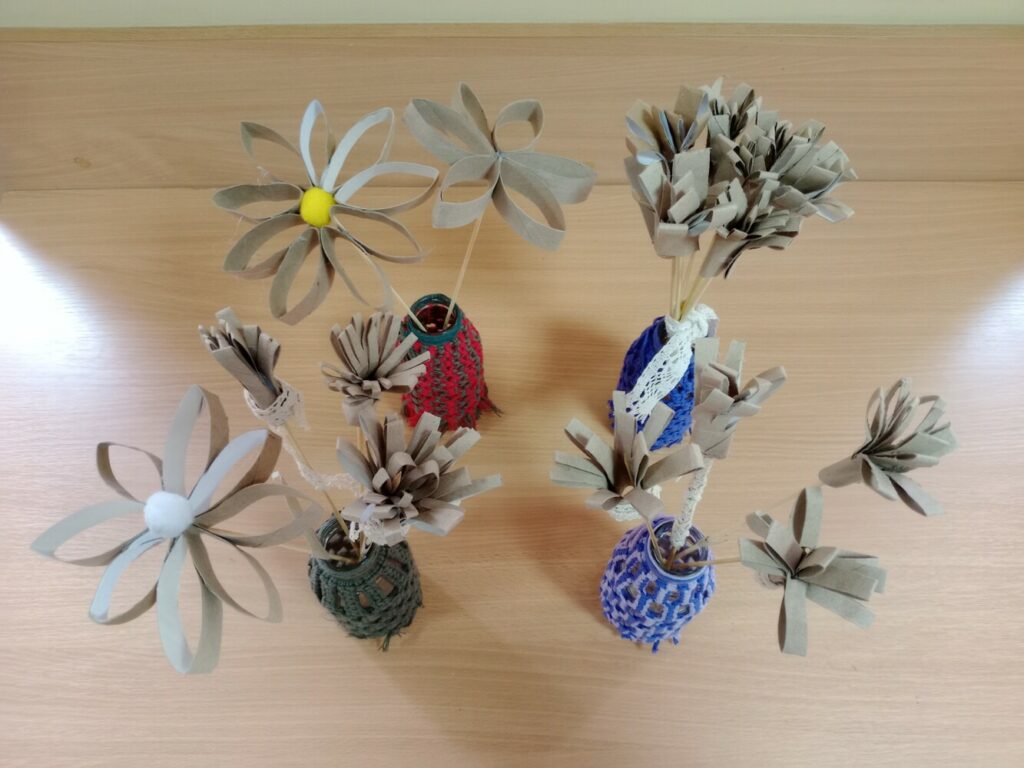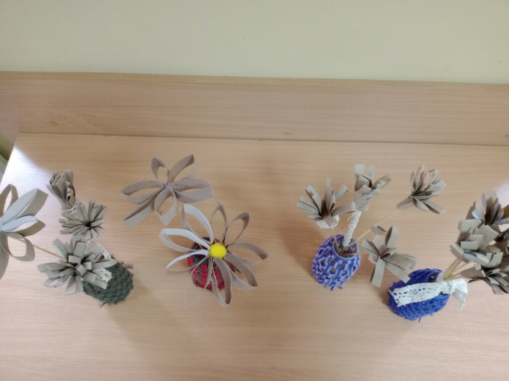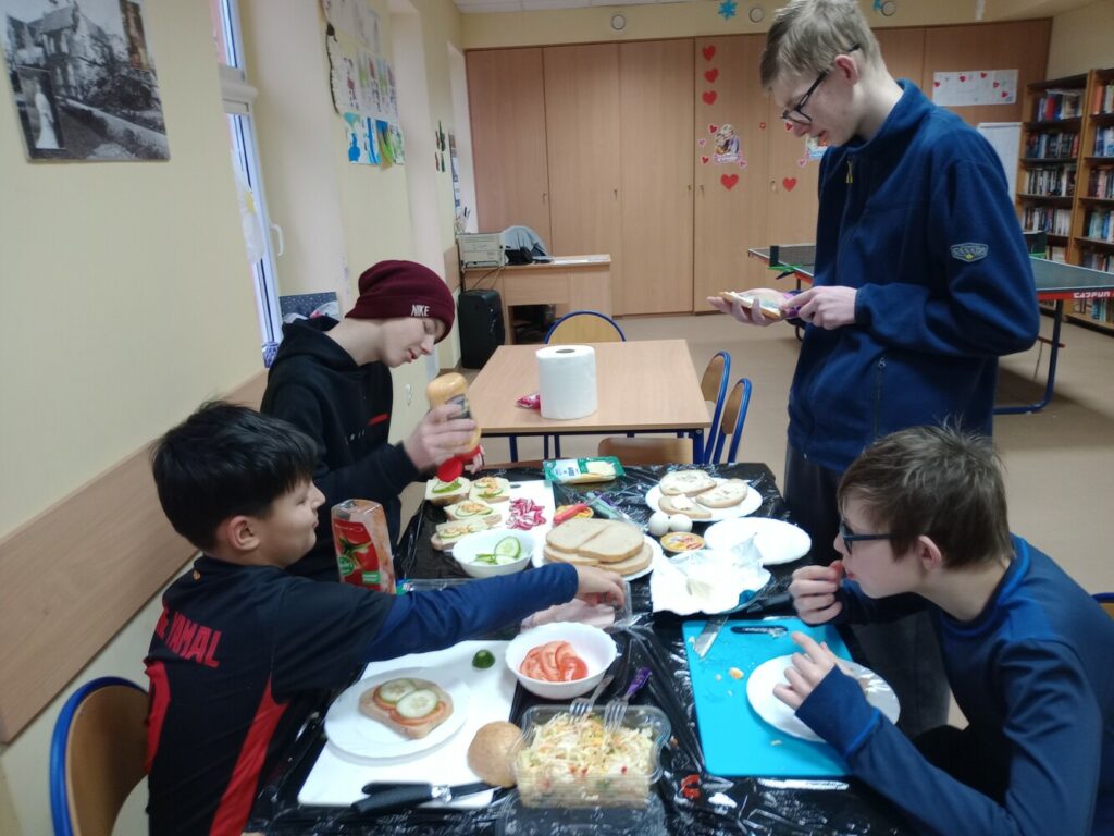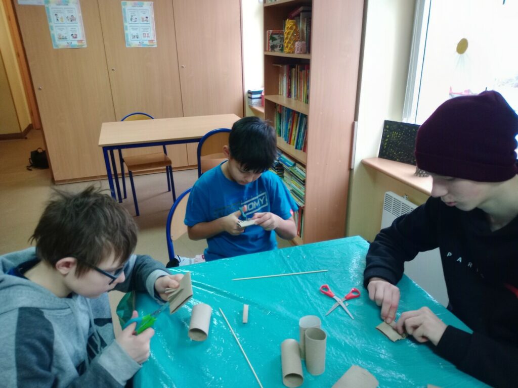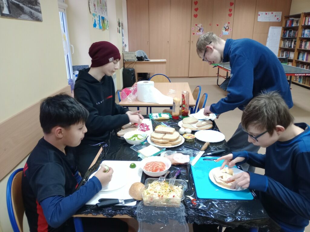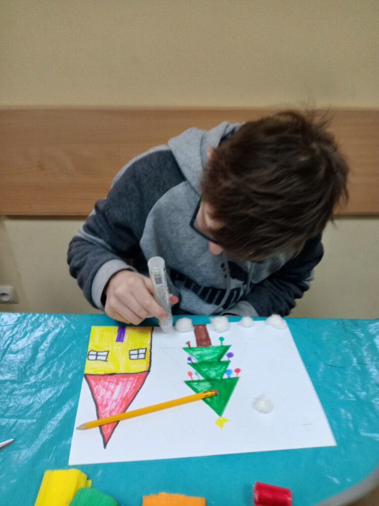 Kolejne dni ferii upłynęły w spokojnej atmosferze. W czwartek ilustrowaliśmy nasze wyobrażenia o zimie – dzieci tworzyły obrazki uwieczniające to, jak postrzegają mroźną porę roku. Tego dnia odbyły się również warsztaty kulinarne, podczas których przygotowywaliśmy kanapki zawierające same zdrowe i pyszne składniki. W piątek zaś stworzyliśmy kwiatki z recyklingu, wykorzystując rolki po papierze. Ekologicznie i efektownie! 🌿✨