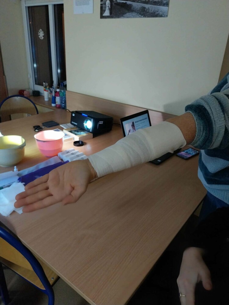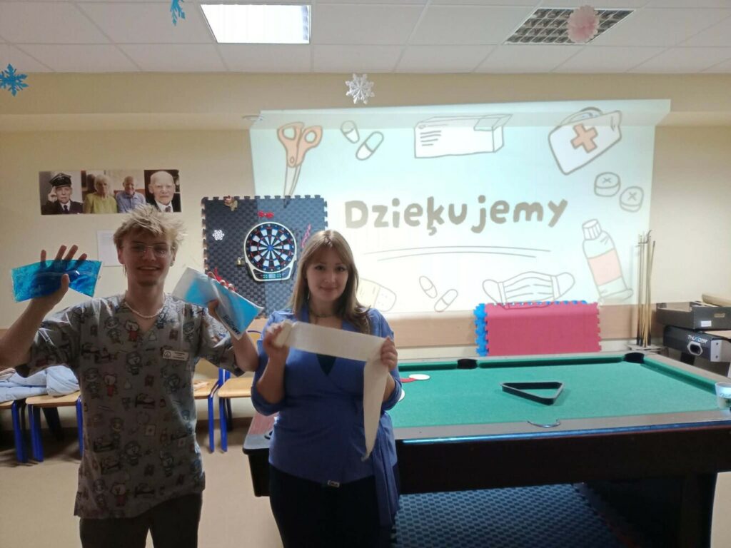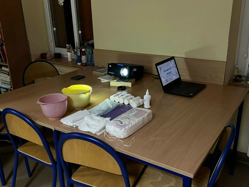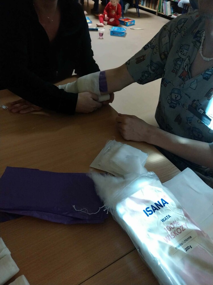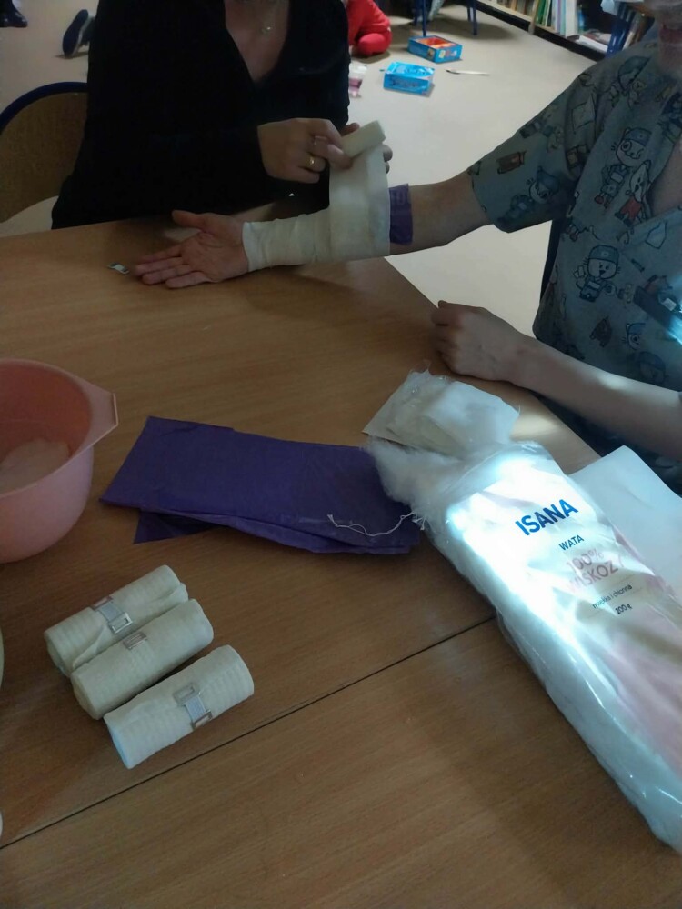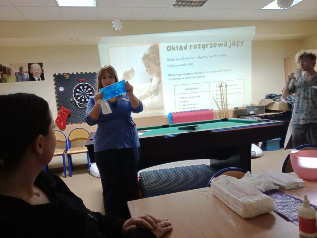 Podczas piątkowych zajęć przeprowadzonych przez studentów pielęgniarstwa wspólnie wykonywaliśmy różne rodzaje kompresów i okładów. Uczestnicy mogli praktycznie przećwiczyć, jak prawidłowo przygotować zarówno ciepłe, jak i zimne okłady czy kompresy. Na bieżąco studenci omawiali jak ciepło i zimno wpływają na organizm – kiedy pomagają, a kiedy mogą zaszkodzić. Zajęcia miały formę swobodnej rozmowy, w której każdy mógł zadawać pytania i otrzymywał na nie merytoryczną odpowiedź. Spotkanie przebiegło w jak najbardziej edukacyjnej atmosferze, a uczestnicy wynieśli z niego konkretne umiejętności do wykorzystania na co dzień.