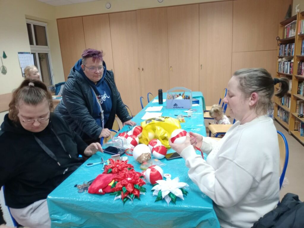W ostatnim czasie w klubie odbywały się nietuzinkowe spotkania. Kobiety z Rady Sołeckiej i Rady Rodziców, we współpracy z GCKiB, wspólnie przygotowywały ozdoby świąteczne. W trakcie spotkań powstawały bombki oraz stroiki. Wykonywane były różnymi technikami, przy użyciu różnorodnych materiałów. Gotowe ozdoby zostały przeznaczone do sprzedaży na kiermaszu świątecznym w Dobrej. Spotkania opiewały w rodzinną atmosferę, pracę zespołową i integrację. Ich efekty wsparły lokalną inicjatywę i wprowadziły magię świąt pośród mieszkańców.