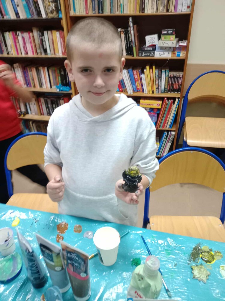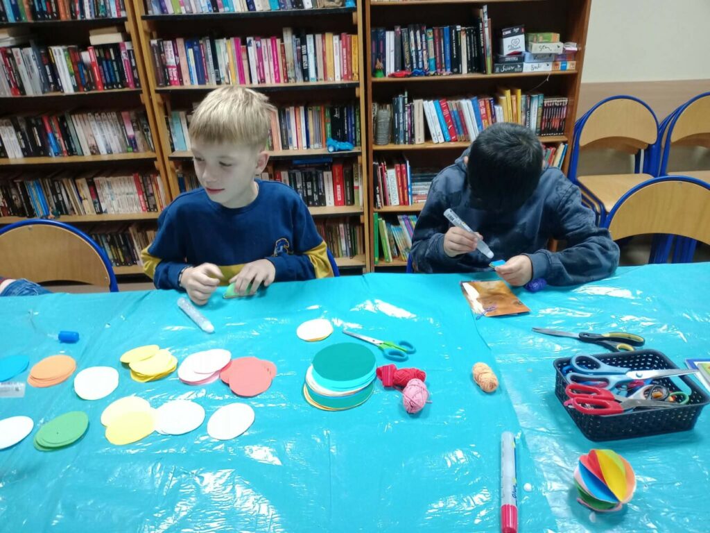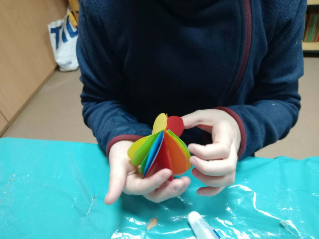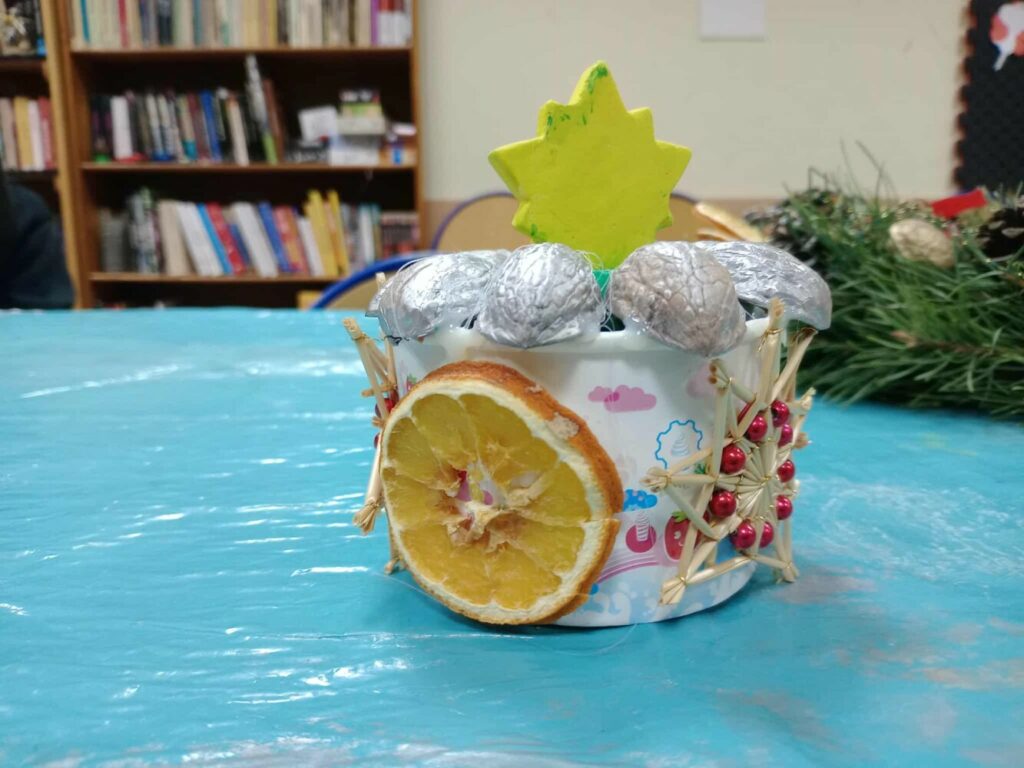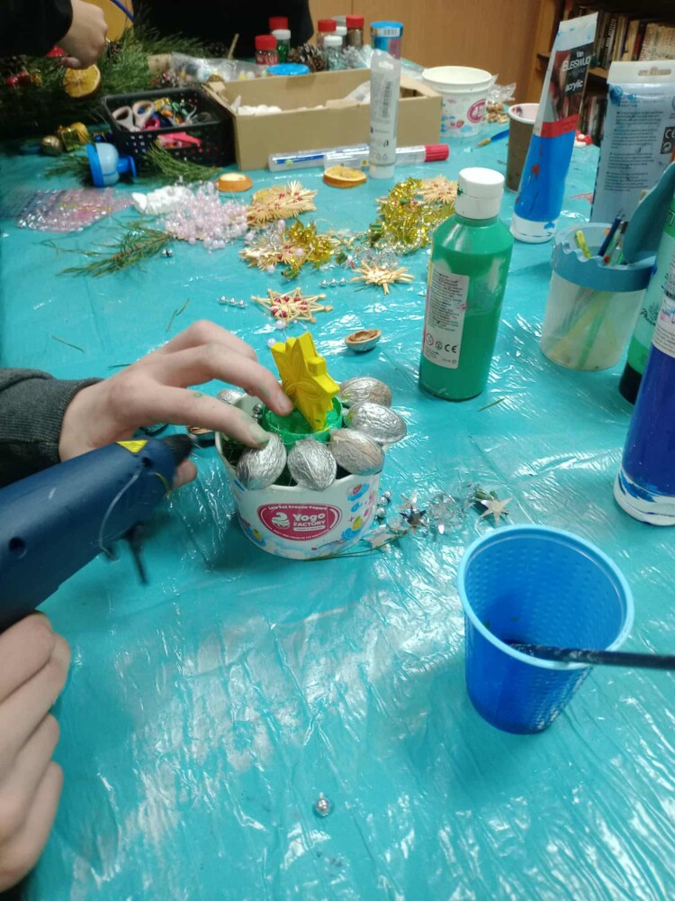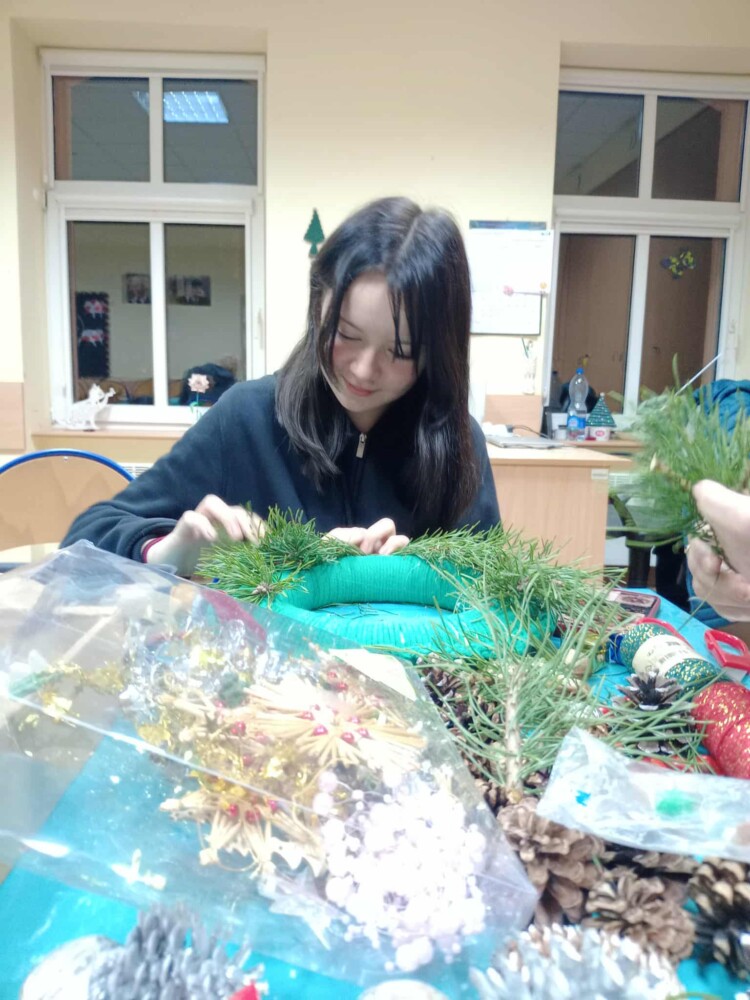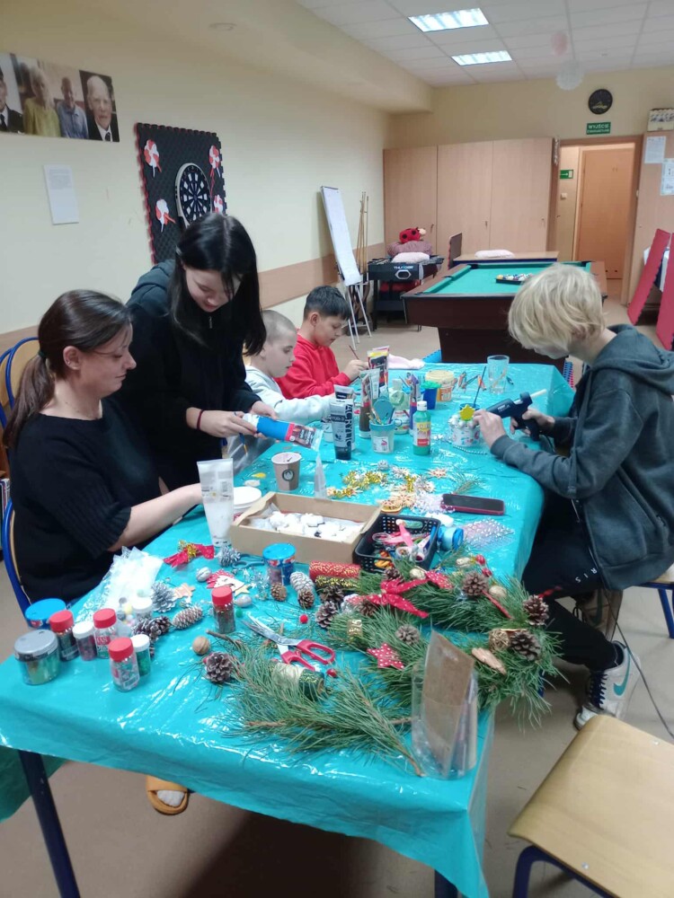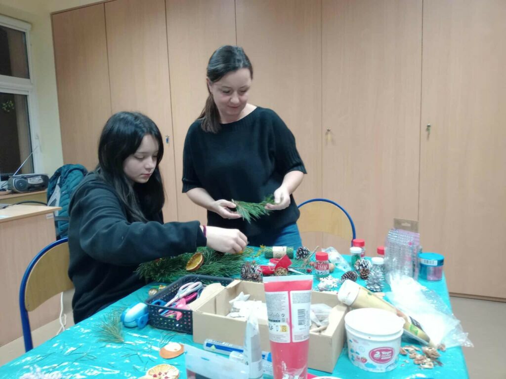 Podczas zajęć 1–2 grudnia tworzyliśmy różne ozdoby świąteczne. Powstał tradycyjny stroik, pomalowaliśmy gipsowe świąteczne figurki. Niektóry wykonali też i bardziej nietypowe dekoracje, jak stroik z kubków plastikowych. Nazajutrz stworzyliśmy bombki wielowymiarowe z papieru.