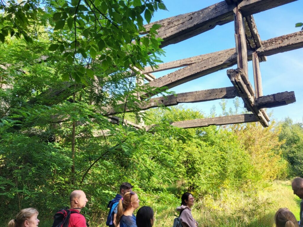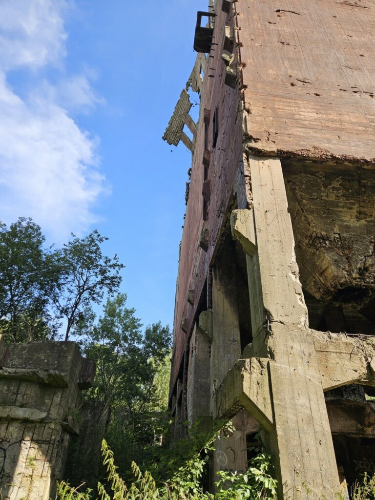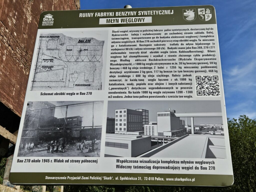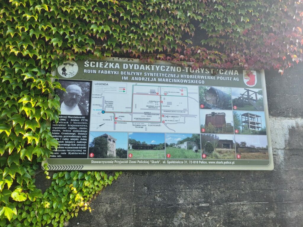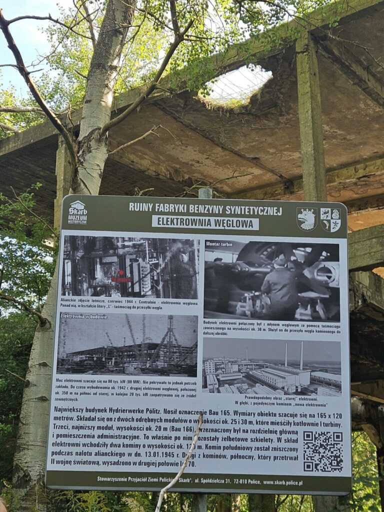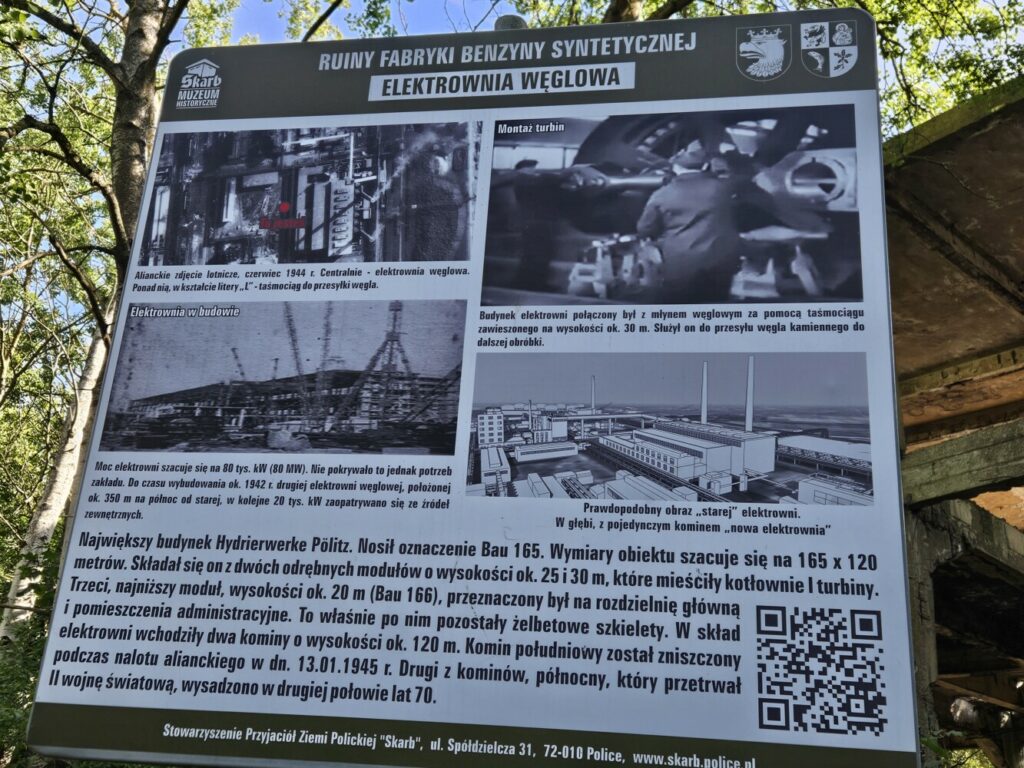 Naszą podróż rozpoczęliśmy w Fabryce Benzyny Syntetycznej w Policach – jednym z najbardziej intrygujących i jednocześnie przytłaczających miejsc w okolicy. Ruiny potężnych betonowych konstrukcji, skąpane w słońcu, budziły respekt i zachwyt. To nie tylko świadectwo imponujących możliwości technicznych sprzed kilkudziesięciu lat, ale też milczący pomnik tragicznej historii XX wieku. Spacerując wśród monumentalnych murów, można było poczuć grozę i ciężar wydarzeń, które na zawsze zmieniły losy tego miejsca.