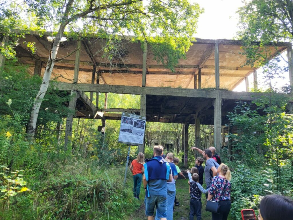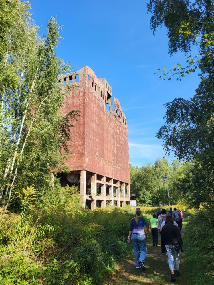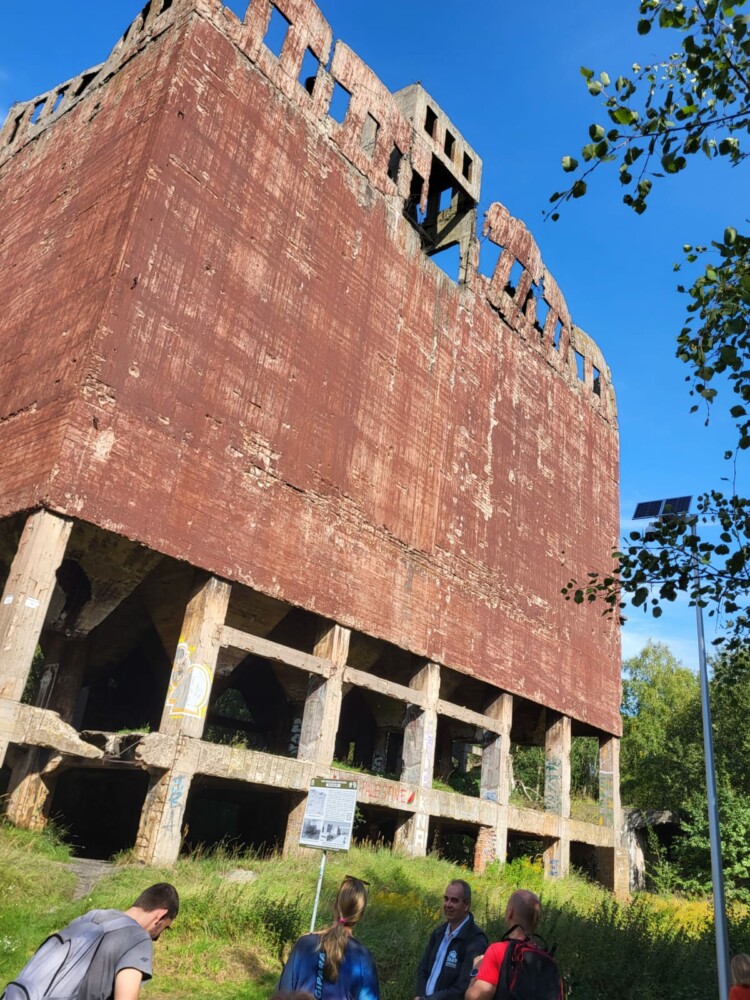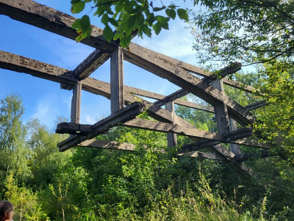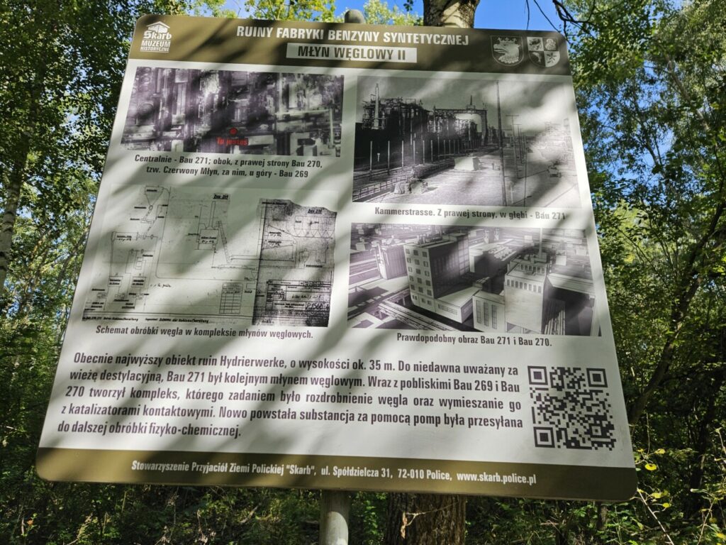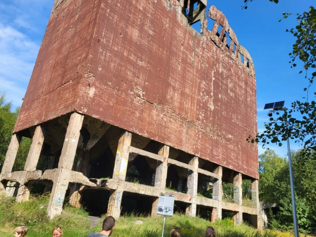 Naszą podróż rozpoczęliśmy w Fabryce Benzyny Syntetycznej w Policach – jednym z najbardziej intrygujących i jednocześnie przytłaczających miejsc w okolicy. Ruiny potężnych betonowych konstrukcji, skąpane w słońcu, budziły respekt i zachwyt. To nie tylko świadectwo imponujących możliwości technicznych sprzed kilkudziesięciu lat, ale też milczący pomnik tragicznej historii XX wieku. Spacerując wśród monumentalnych murów, można było poczuć grozę i ciężar wydarzeń, które na zawsze zmieniły losy tego miejsca.