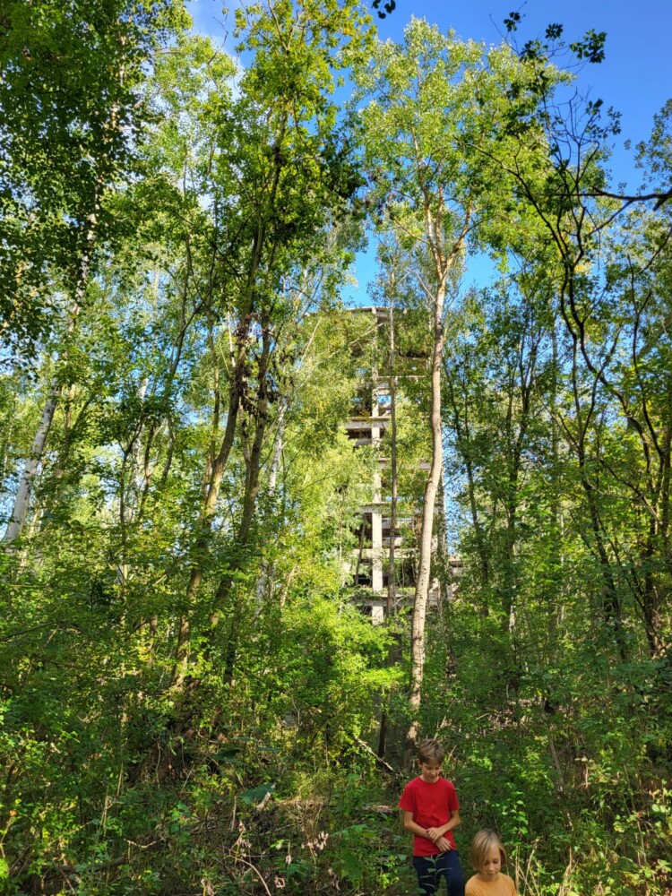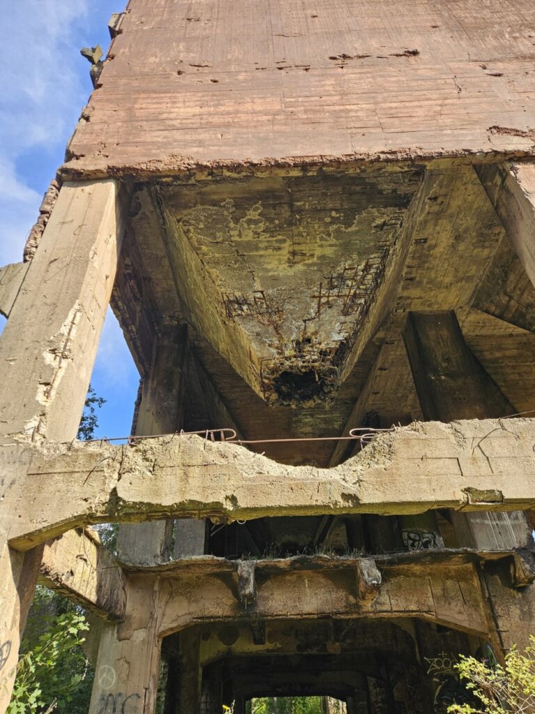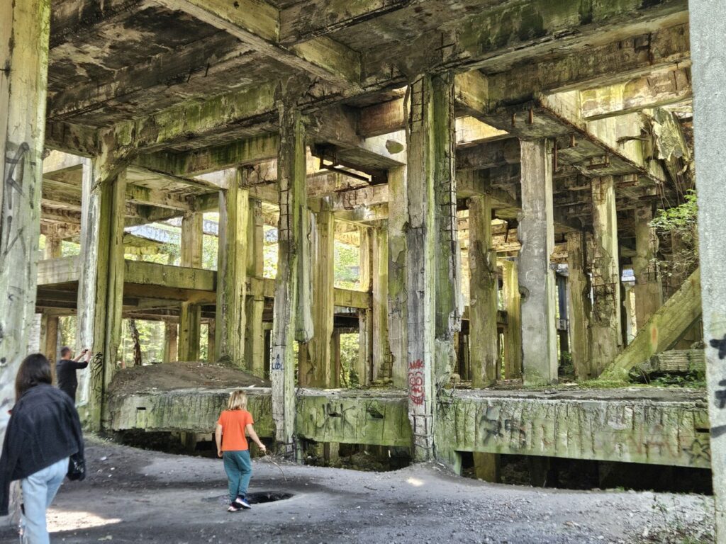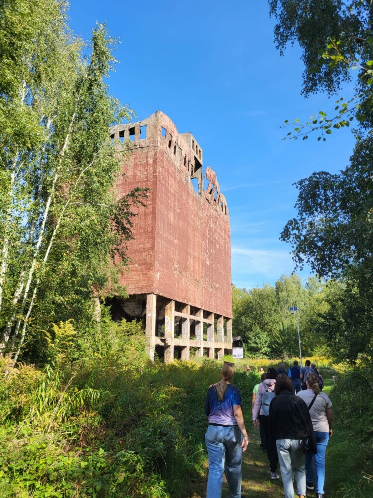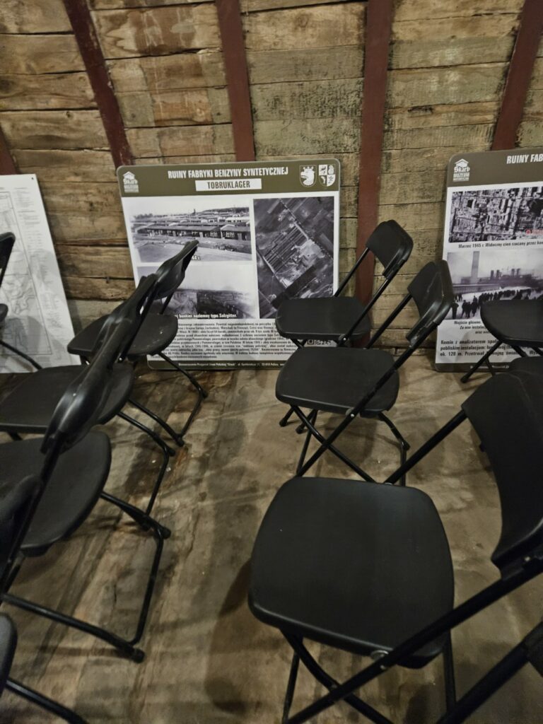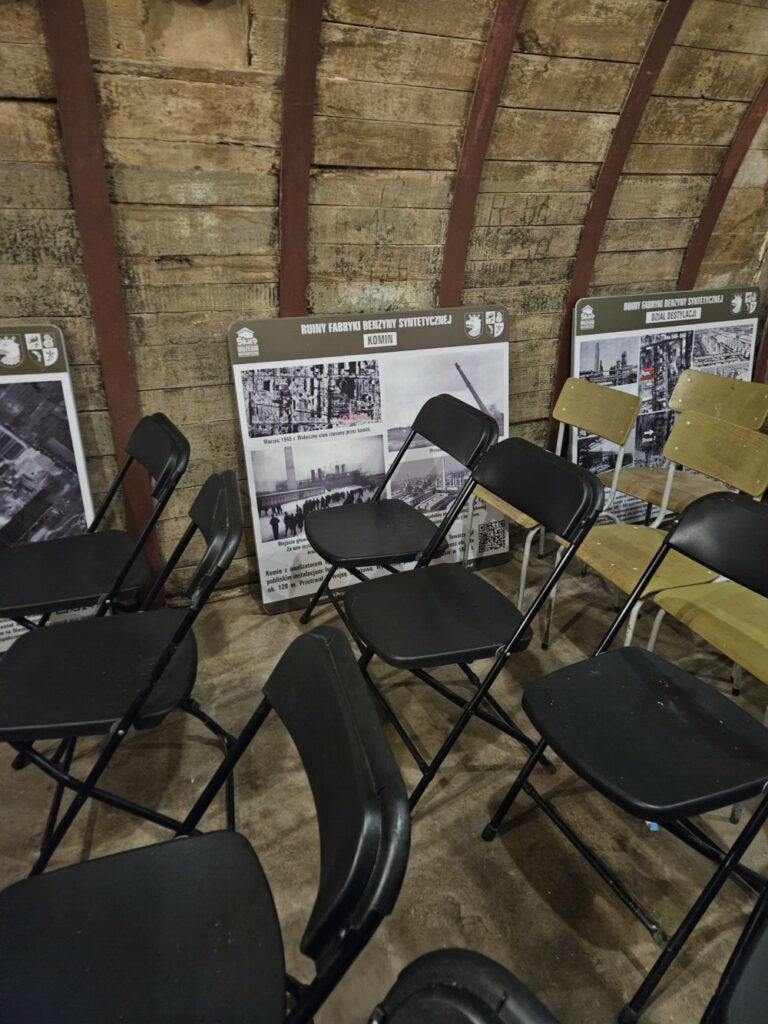 Naszą podróż rozpoczęliśmy w Fabryce Benzyny Syntetycznej w Policach – jednym z najbardziej intrygujących i jednocześnie przytłaczających miejsc w okolicy. Ruiny potężnych betonowych konstrukcji, skąpane w słońcu, budziły respekt i zachwyt. To nie tylko świadectwo imponujących możliwości technicznych sprzed kilkudziesięciu lat, ale też milczący pomnik tragicznej historii XX wieku. Spacerując wśród monumentalnych murów, można było poczuć grozę i ciężar wydarzeń, które na zawsze zmieniły losy tego miejsca.