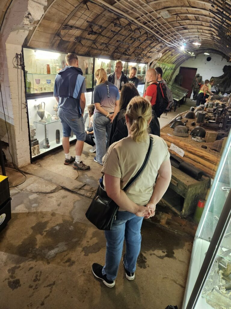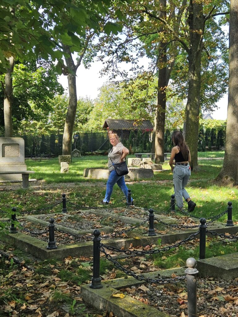 Kolejnym punktem programu był cmentarz w Dołujach – przestrzeń ciszy i zadumy. Chwila spędzona przy mogiłach pozwoliła nam zatrzymać się w biegu codzienności i uświadomić sobie, jak ważna jest pamięć o przeszłości, nawet tej najtrudniejszej.