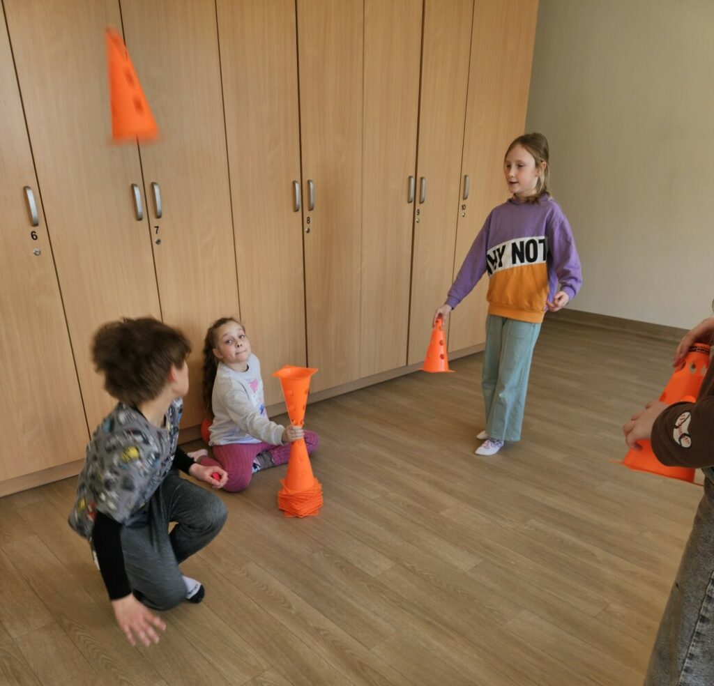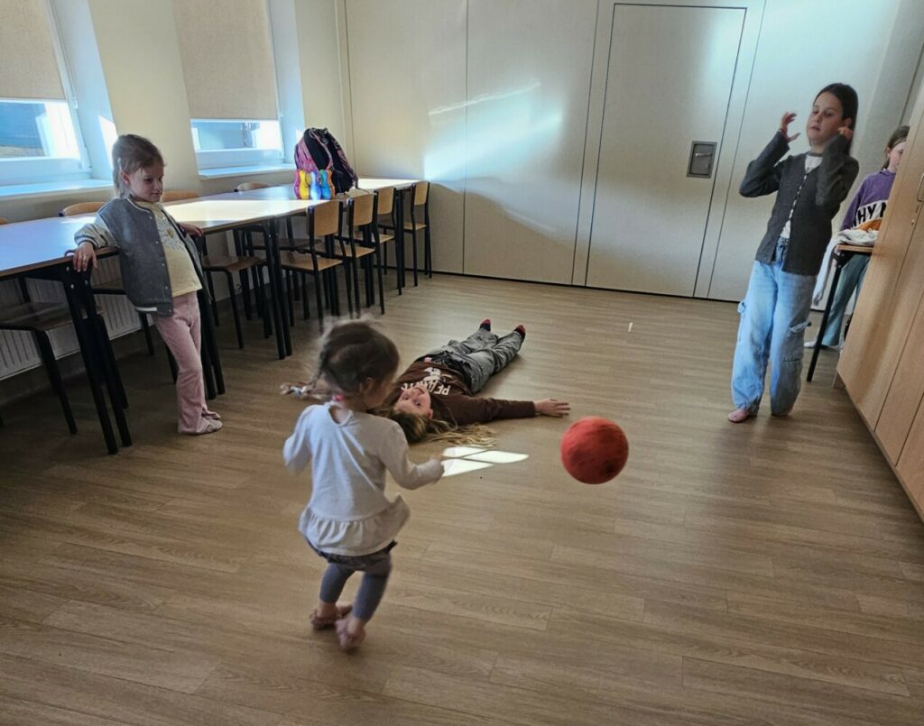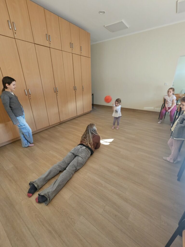 Następnie sala wypełniła się śmiechem podczas gry w zbijaka 🏐– było dużo ruchu, emocji i zdrowej rywalizacji!