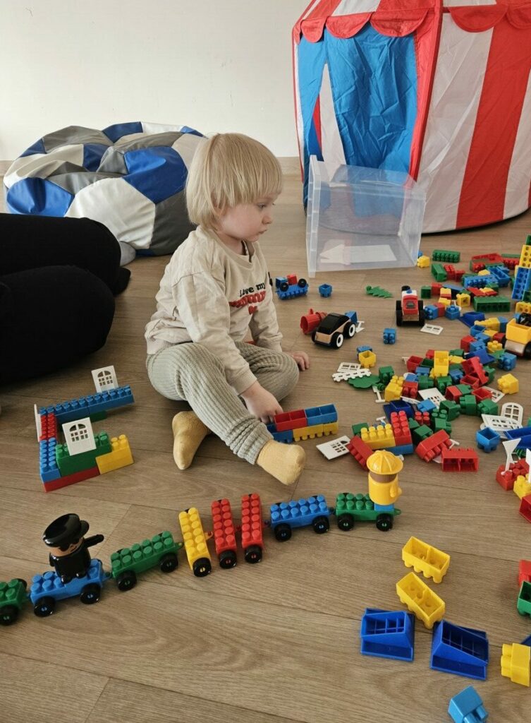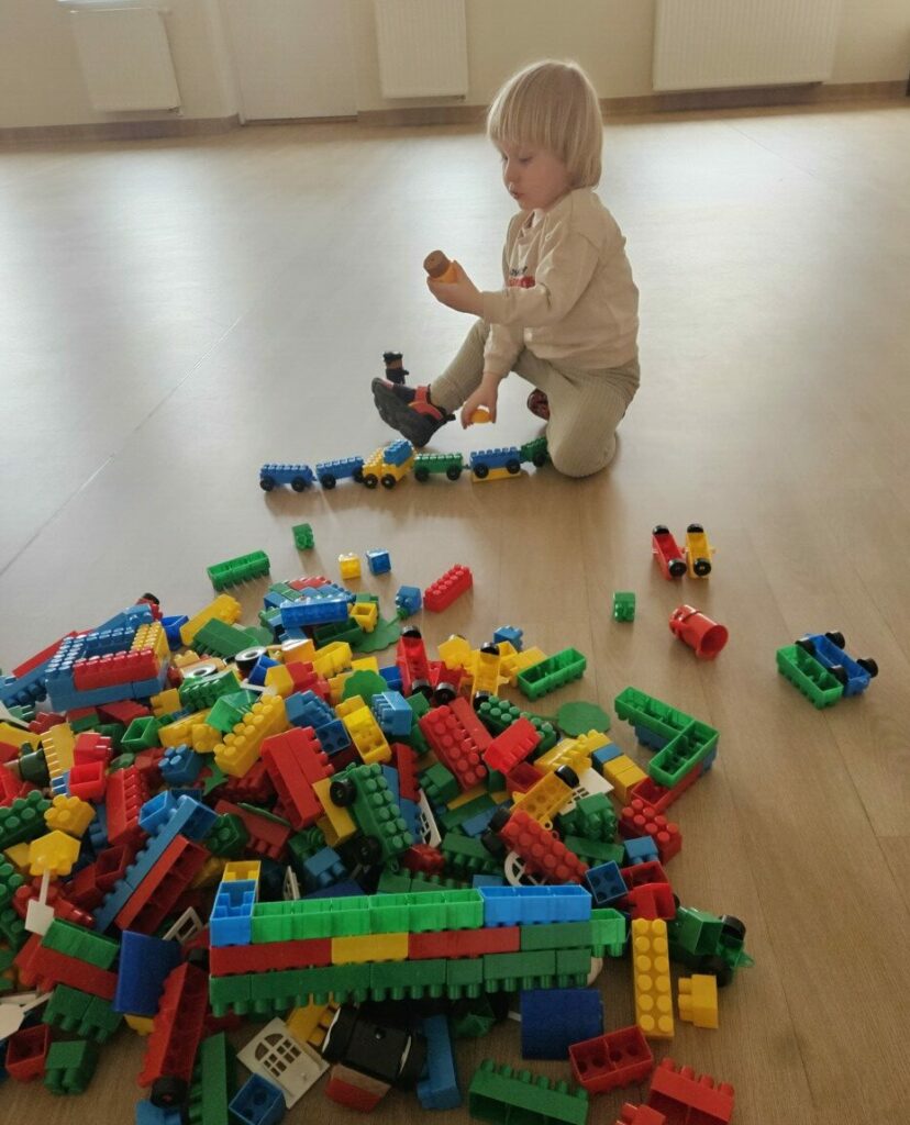 Najmłodsi uczestnicy z radością oddali się zabawie klockami 🧩, budując swoje własne konstrukcje i rozwijając kreatywność poprzez zabawę.