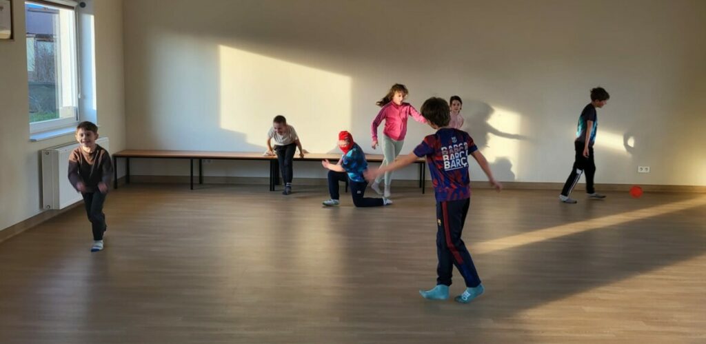 Dzieci spędziły czas aktywnie, zaczynając od wspólnych zabaw ruchowych i gier z piłką 🏀, które dostarczyły mnóstwo emocji i zdrowej rywalizacji.