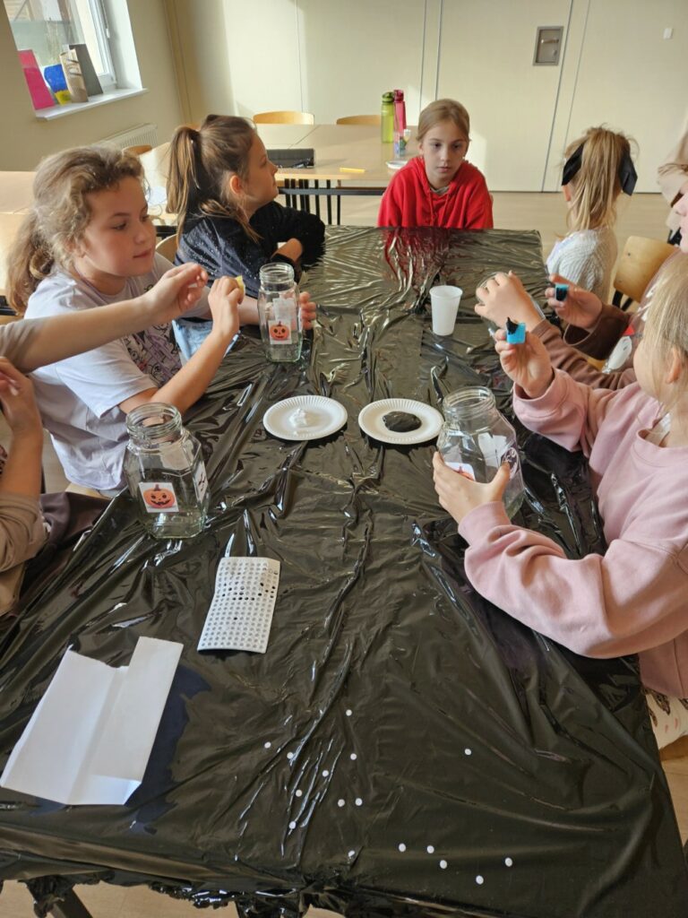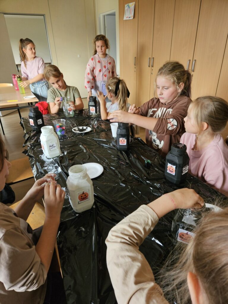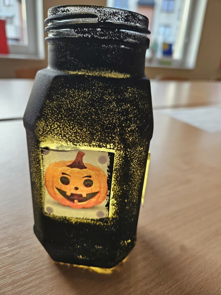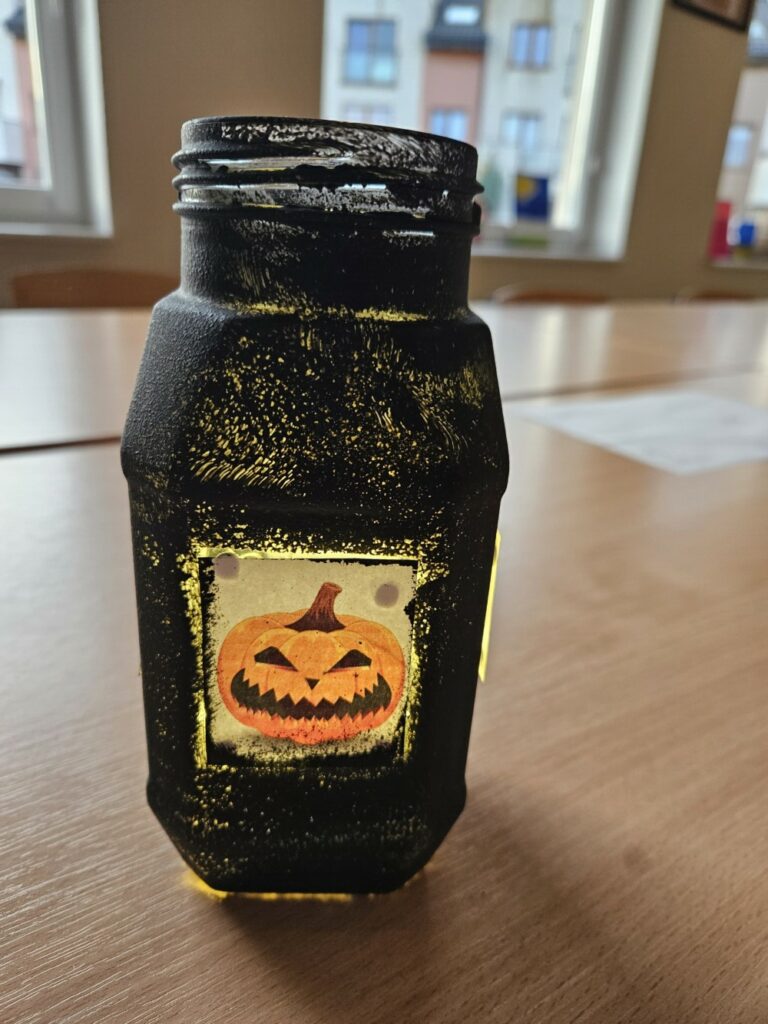 Podczas warsztatów tworzyliśmy własne, niepowtarzalne słoiki-latarenki Halloweenowe 🕯️ – każdy inny, każdy wyjątkowy, ale wszystkie zachwycające! 😍