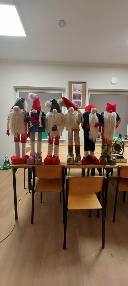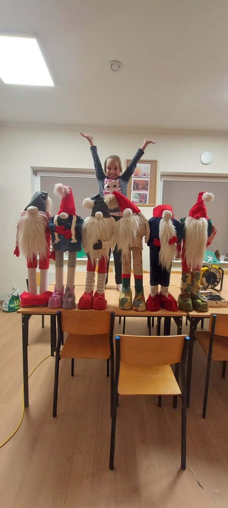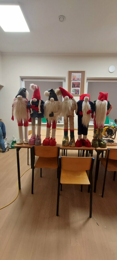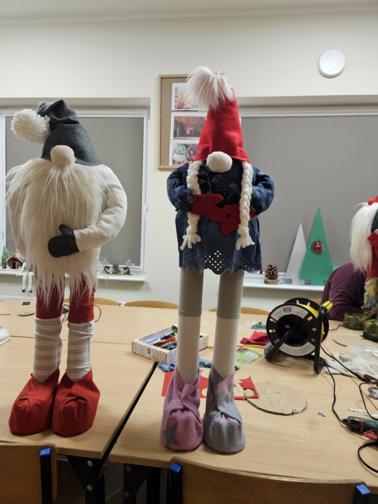 Podczas warsztatów „Skrzaty zimowe” powstały przepiękne, własnoręcznie wykonane świąteczne skrzaty — duże, miękkie, z długimi brodami, warkoczykami i kolorowymi czapami 🧝♂️🧶🧝♀️